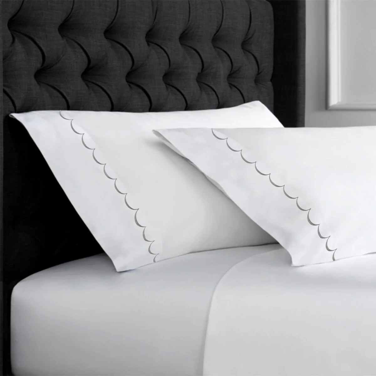 Indulge in luxurious comfort with our Home Sweet Home Collection 600TC Cotton Scallop Embroidery Sham and Pillowcase Set. Crafted from 100% super soft sateen cotton with a smooth texture, this Set features a classic scallop stripe embroidery design that adds a touch of elegance to any bedroom. .