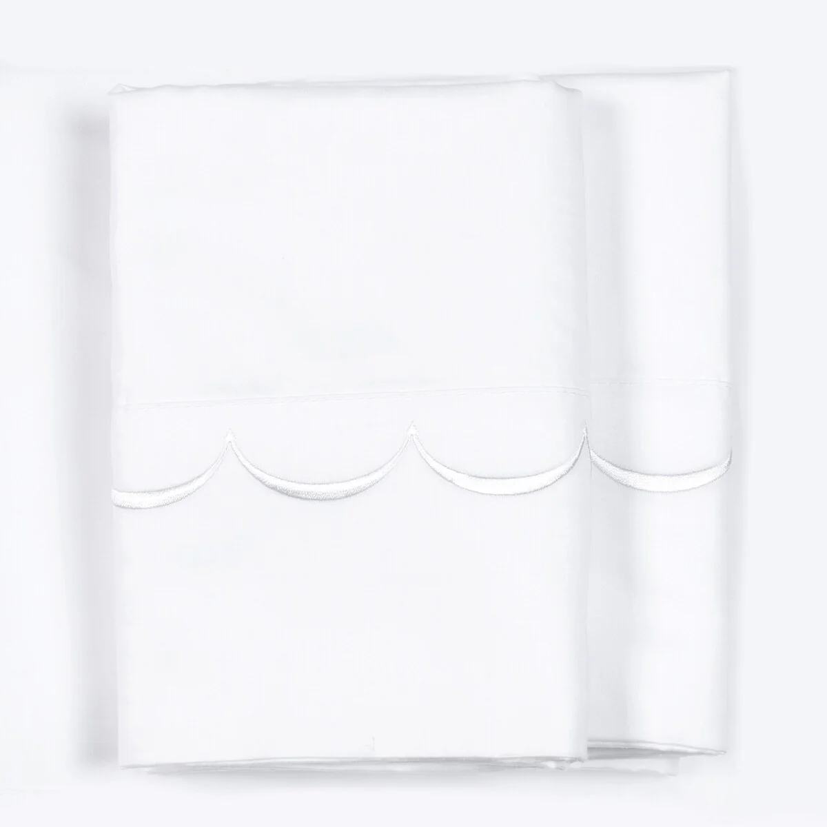 Transform your sleeping area with this Home Sweet Home Collection sheet set by Melange Home. Weaved with 600-thread-count, 100-percent cotton, this sheet set feels super comfortable on your skin and offers long-lasting use. A beautiful Scallop embroidery on the flat sheet and pillow cases adds subtle texture to your bed.