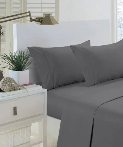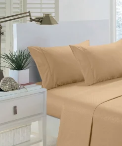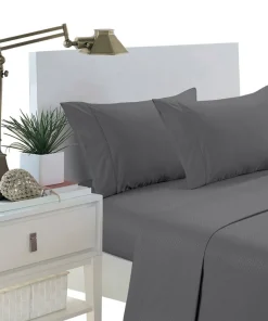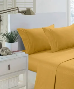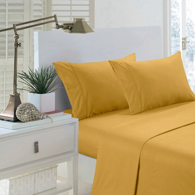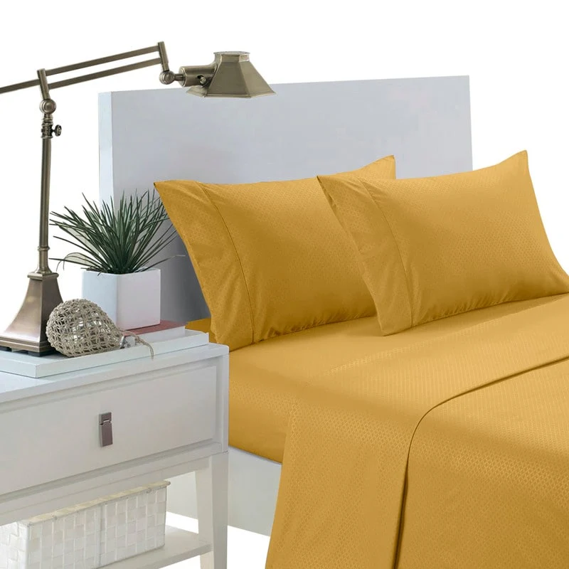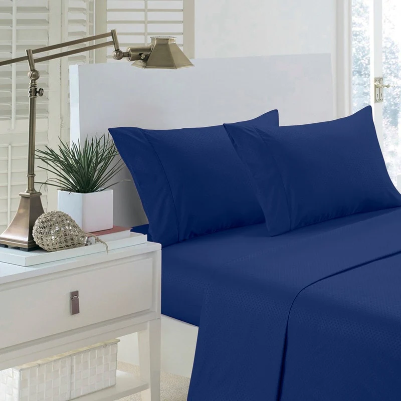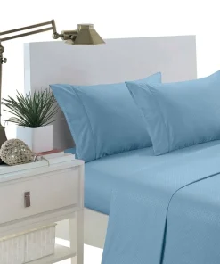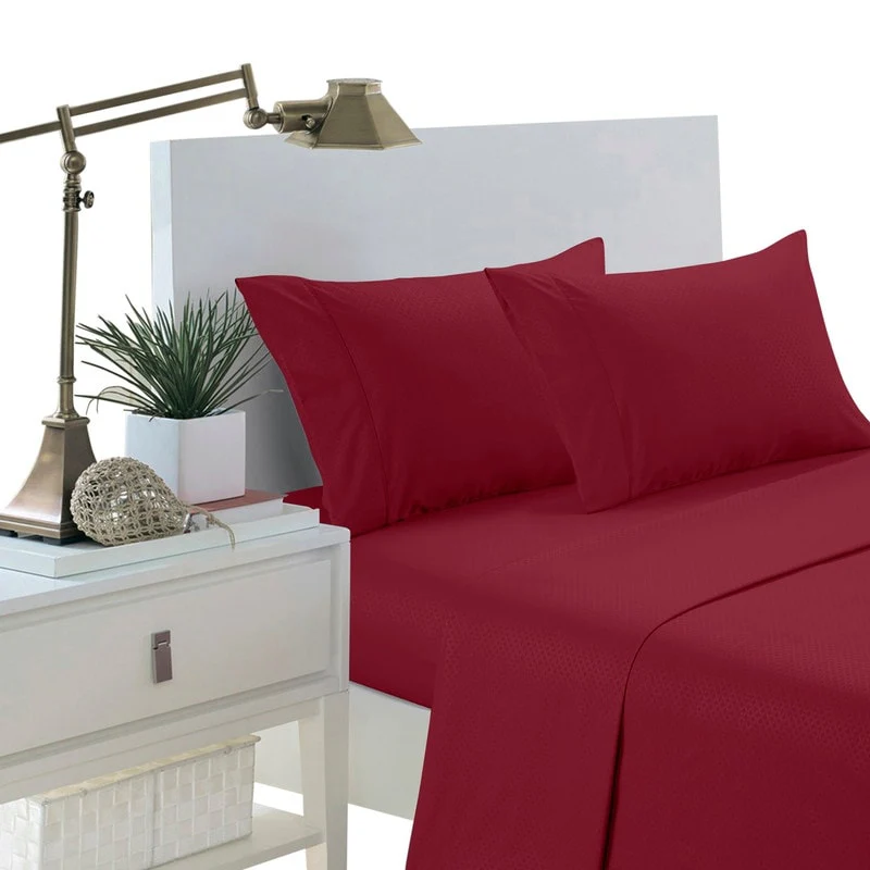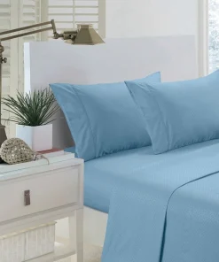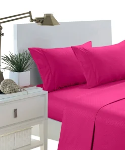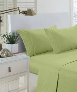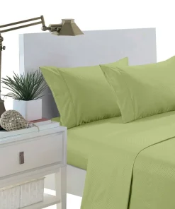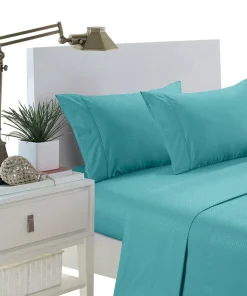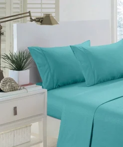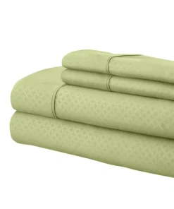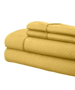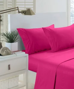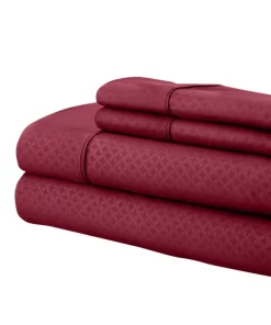 Sleep in ultimate comfort with the Jenshire sheet set from Porch & Den. The hypoallergenic microfiber set is detailed with a Greek key design for contemporary style. Choose from six sizes and 12 unique colors to complement your existing bedding.Features: Made of microfiber Modern, contemporary style Embossed Pentagon design Available in 12 colors Wrinkle-resistant Hypoallergenic Deep pocket design Machine washable—wash separately in cold water on a gentle cycle for approximately 15 minutes. Do not wash with other items. Do not bleach. Tumble dry on low. Iron as needed. Set includes flat sheet, fully-elasticized fitted sheet, and 2 pillowcases Twin sets include 1 pillowcase Available in 6 sizesTwin XL Size: Flat Sheet: 66 inches wide x 96 inches long Fitted Sheet: 39 inches wide x 80 inches long Pillowcase: 20 inches wide x 30 inches longTwin Size: Flat Sheet: 66 inches wide x 96 inches long Fitted Sheet: 39 inches wide x 75 inches long Pillowcase: 20 inches wide x 30 inches longFull Size: Flat Sheet: 81 inches wide x 96 inches long Fitted Sheet: 54 inches wide x 75 inches long Pillowcases: 20 inches wide x 30 inches longQueen Size: Flat Sheet: 90 inches wide x 102 inches long Fitted Sheet: 60 inches wide x 80 inches long Pillowcases: 20 inches wide x 30 inches longKing Size: Flat Sheet: 108 inches wide x 104 inches long Fitted Sheet: 78 inches wide x 80 inches long Pillowcases: 20 inches wide x 40 inches longCalifornia King Size: Flat Sheet: 108 inches wide x 102 inches long Fitted Sheet: 72 inches wide x 84 inches long Pillowcases: 20 inches wide x 40 inches long