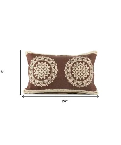 HomeRoots 16" X 24" Brown and Ivory Medallion Cotton Lumbar Throw Pillow With Texture