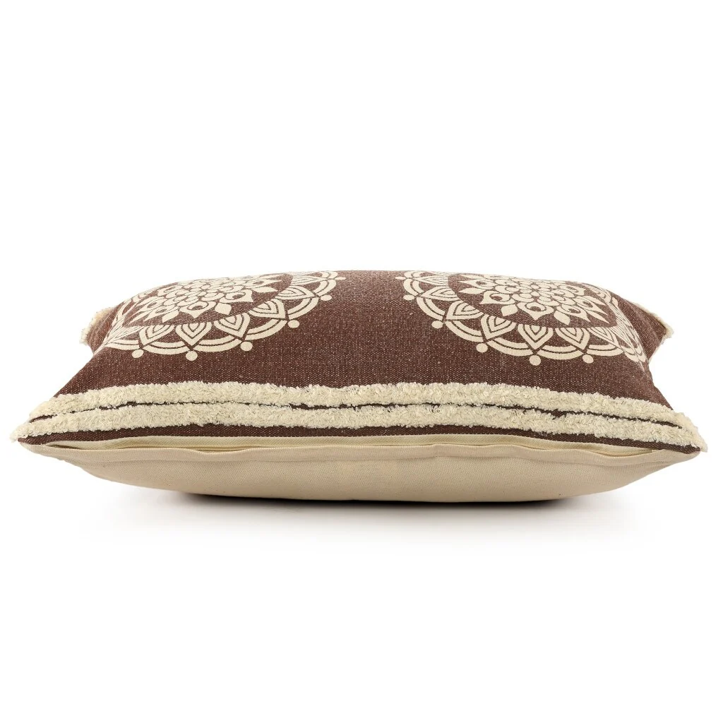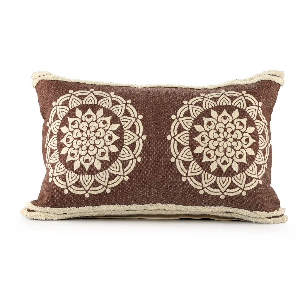 Add an air of fashion to your room and rejuvenate the space with this cute and fashionable 16-inch x 24-inch brown and ivory medallion cotton lumbar throw pillow with texture. This soft and durable decorative pillow is expertly made of high grade, long lasting cotton in a brown and ivory coloration. Super soft and built to hold its shape, this polyfill pillow is a great option. For anyone that loves to decorate or accent their space with color and texture. A great decorative accessory for your favorite chair, to accent your sofa, or to use as part of your bed ensemble. 16-inch H x 24-inch W x 4-inch D