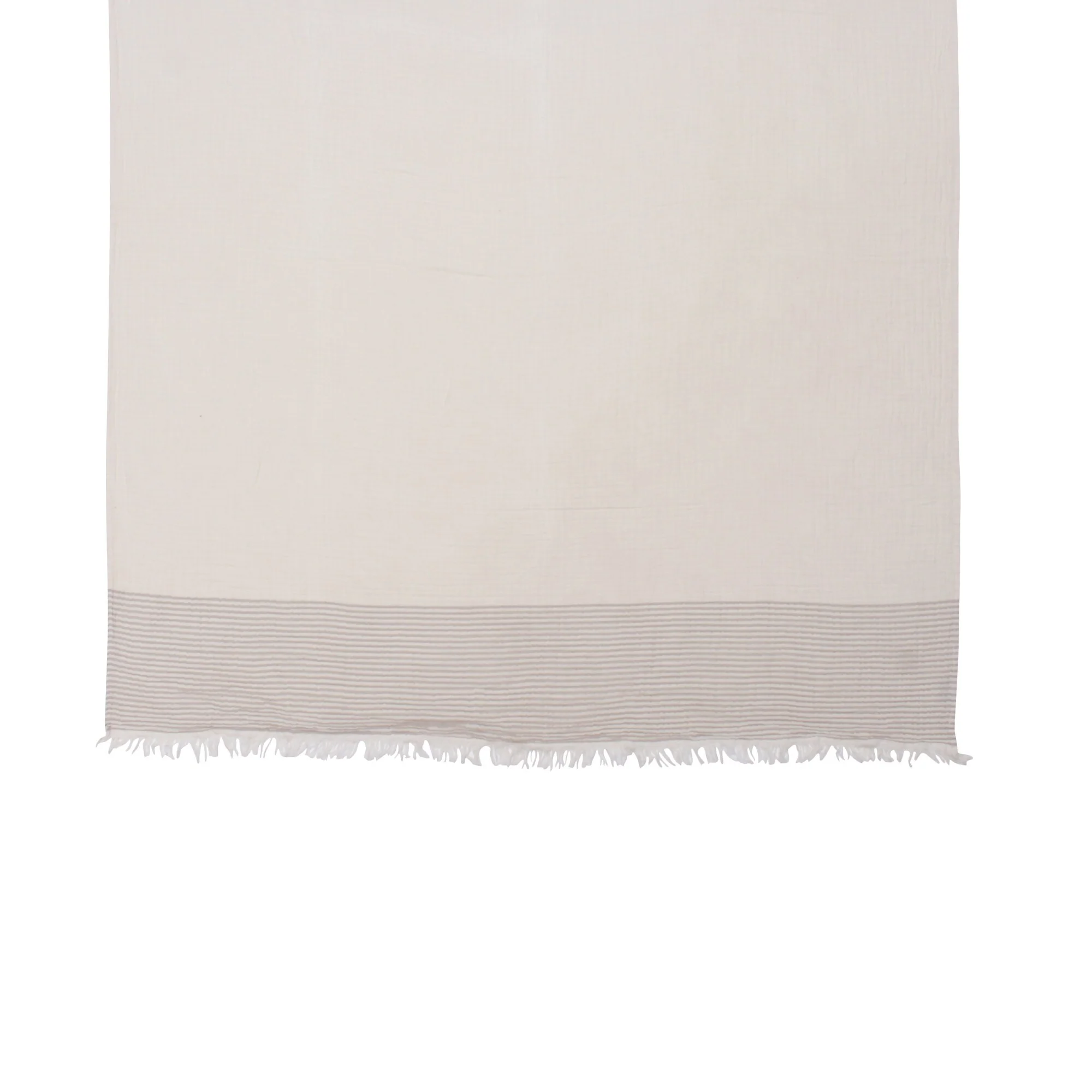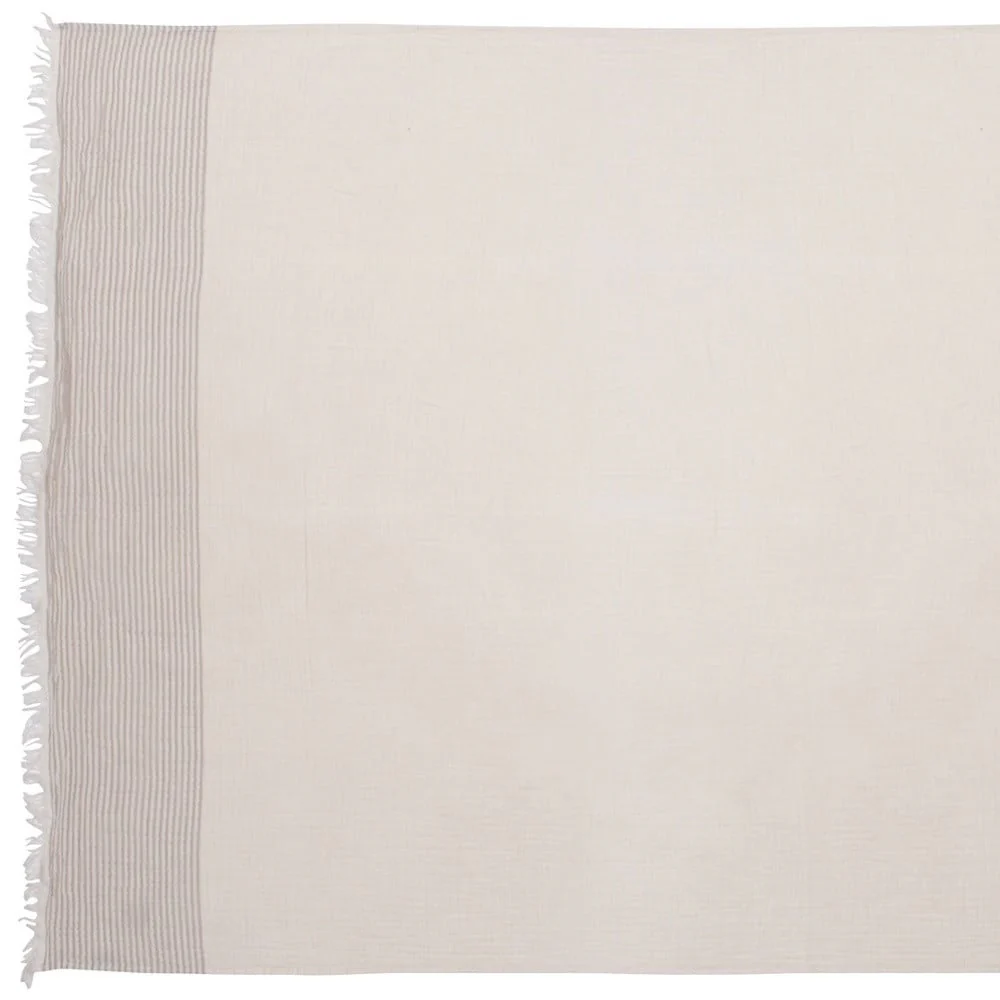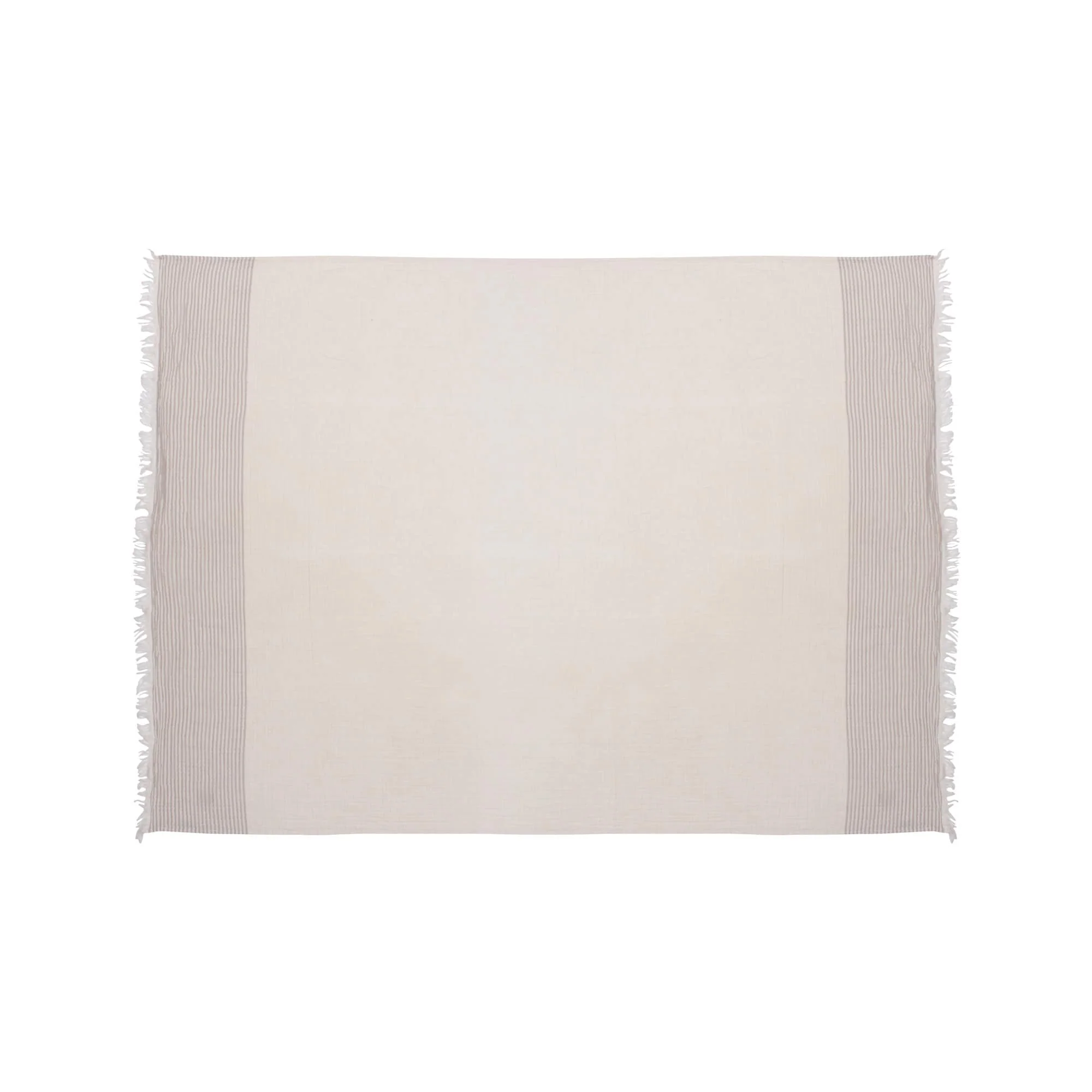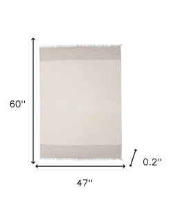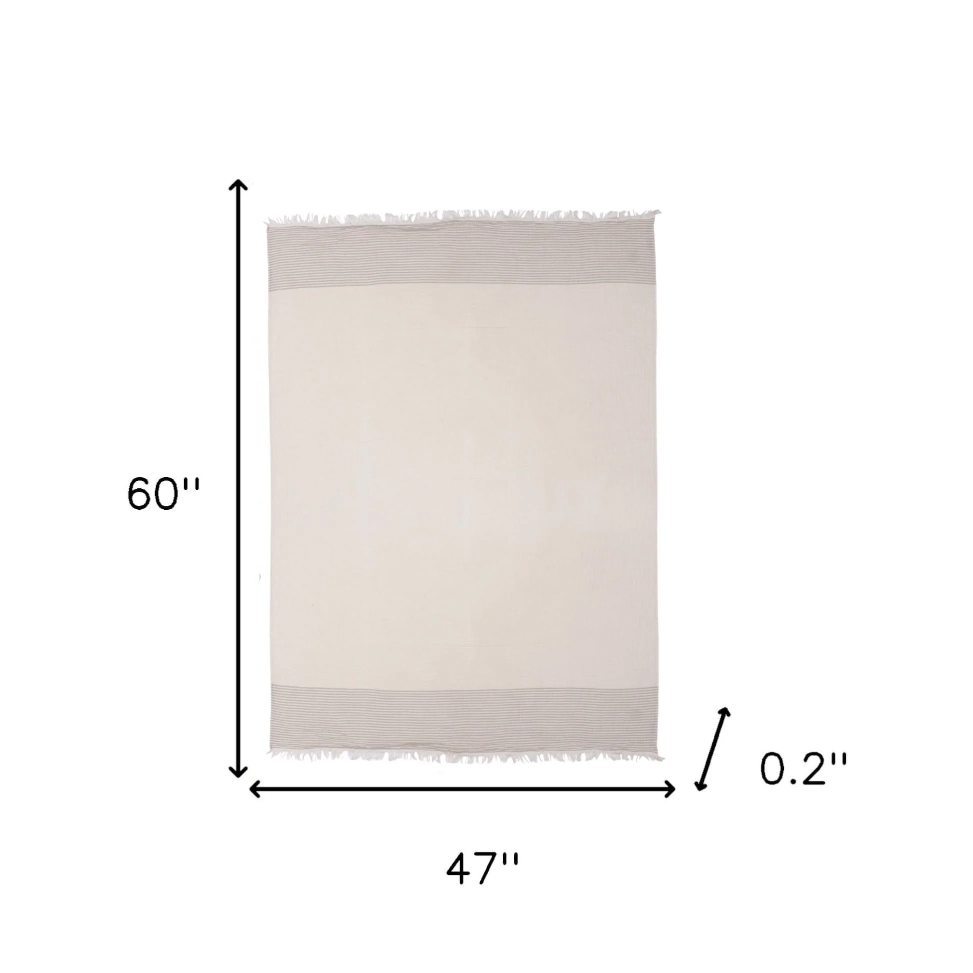 HomeRoots 47" X 60" Beige and Ivory Cotton Woven Striped Throw Blanket with Fringe