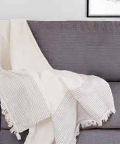 This 47-inch x 60-inch beige and ivory cotton woven striped throw blanket with fringe is an essential for any cozy abode. Features a woven striped design that offers sumptuous softness and texture that you’ll cherish for years to come. Made from cotton this blanket will make a great addition to any room it’s added to. Add extra texture to your decor and turn your room into an inviting space. This cozy throw blanket makes the perfect add-on to movie nights and lazy afternoons. 60-inch h x 47-inch w x 0.2-inch d