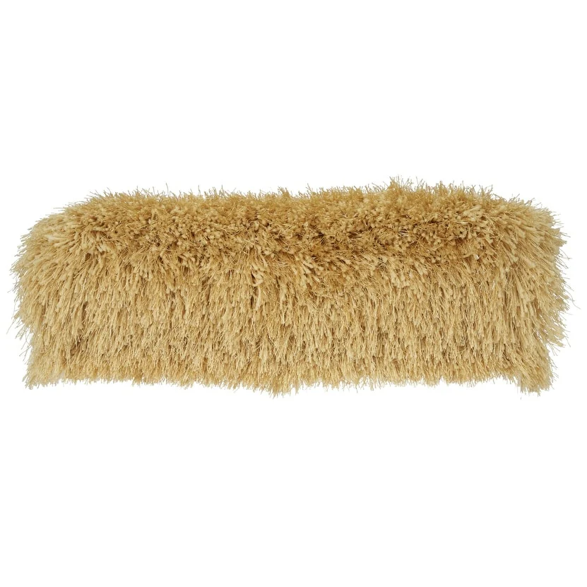Unique and decorative, this comfortable 5-inch x 20-inch yellow bolster shag throw pillow will leave a lasting impression. This yellow hued piece represents quality construction, expertly made from durable shag that is not only long lasting but soft to the touch as well. Super soft and built to hold its shape, this polyester pillow is a great option. For anyone that loves to decorate or accent their space with color and texture. A great decorative accessory for your favorite chair, to accent your sofa, or to use as part of your bed ensemble. 5-inch H x 20-inch W x 5-inch D