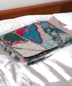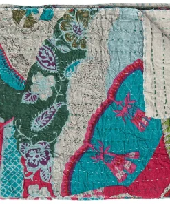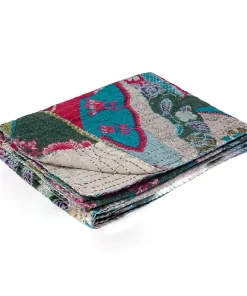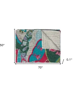 This 50-inch x 70-inch green and pink kantha cotton abstract throw blanket with embroidery brings a classic, refined style to your space. Featuring beautiful embroidery, this embellished throw is of the highest quality and design. Made from cotton this blanket will make a great addition to any room it’s added to. Layering your furnishings with a decorative throw has the ability to awaken a tired living room or elevate the design of your bedroom simply by providing elements of color and texture that weren’t there before. This cozy throw blanket is sure to become your go-to couch companion. 50-inch H x 70-inch W x 0.1-inch D