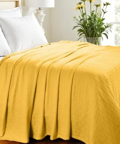 This california king gold cotton basketweave geometric blanket is a cozy and stylish addition to your bed ensemble. A classic and timeless design combines with cozy comfy style so this cotton blanket can deliver you a restful and comfortable sleep all year long. Enhance your space and the quality of your sleep with this soft and comfortable blanket that helps regulate your core body temperature, helps you to relax, and ultimately fall to sleep. 108-inch h x 100-inch w x 0.25-inch d.