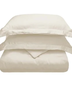 HomeRoots Ivory King Cotton Blend 300 Thread Count Washable Duvet Cover Set