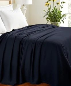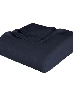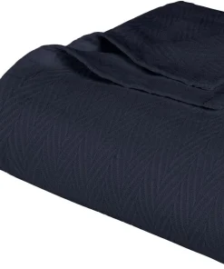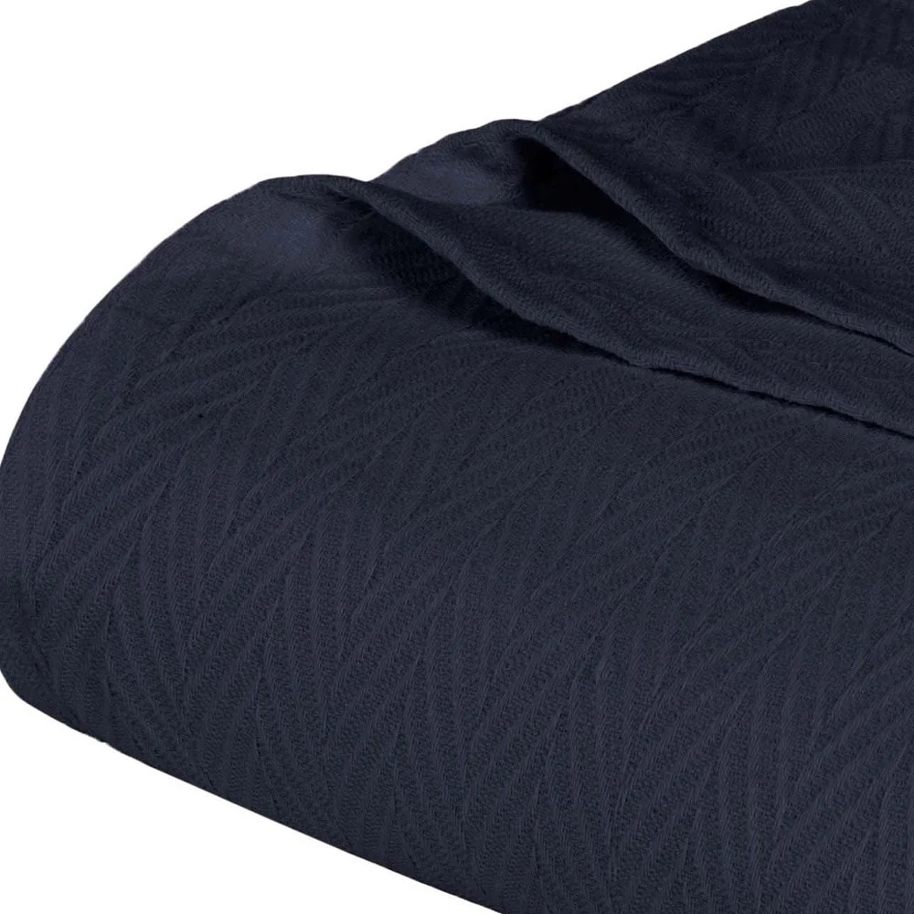 This queen navy blue cotton woven chevron blanket is a cozy and stylish addition to your bed ensemble. A classic and timeless design combines with cozy comfy style so this cotton blanket can deliver you a restful and comfortable sleep all year long. Enhance your space and the quality of your sleep with this soft and comfortable blanket that helps regulate your core body temperature, helps you to relax, and ultimately fall to sleep. 90-inch h x 88-inch w x 0.25-inch d.