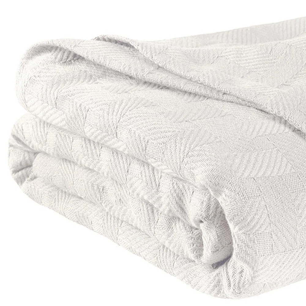 100% Cotton Basket Weave Thermal Bed Blanket Breathable Soft Layering All Season Medium Weight