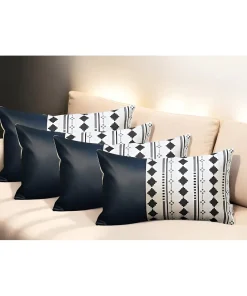 This set of four 20" x 12" navy blue faux leather diamond zippered pillow will add a beautiful decorative accent to your decor. This navy blue colored decorative pillow set is made from high grade faux leather that is durable and soft to the touch. For anyone that loves to decorate or accent their space with color and texture. Decorative pillows are a great way to change up the look and feel of your space easily and quickly. 6.04" H x 20" W x 12" D