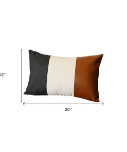 HomeRoots Set Of Two 20" X 12" Black Grey And Brown Polyester Geometric Zippered Pillow