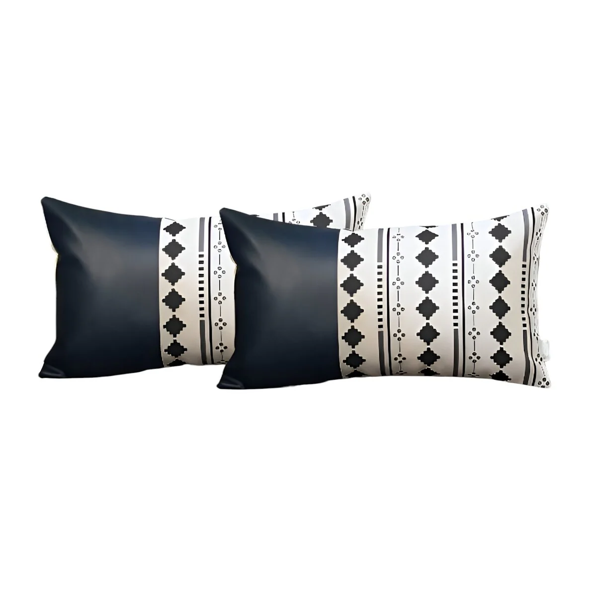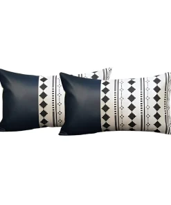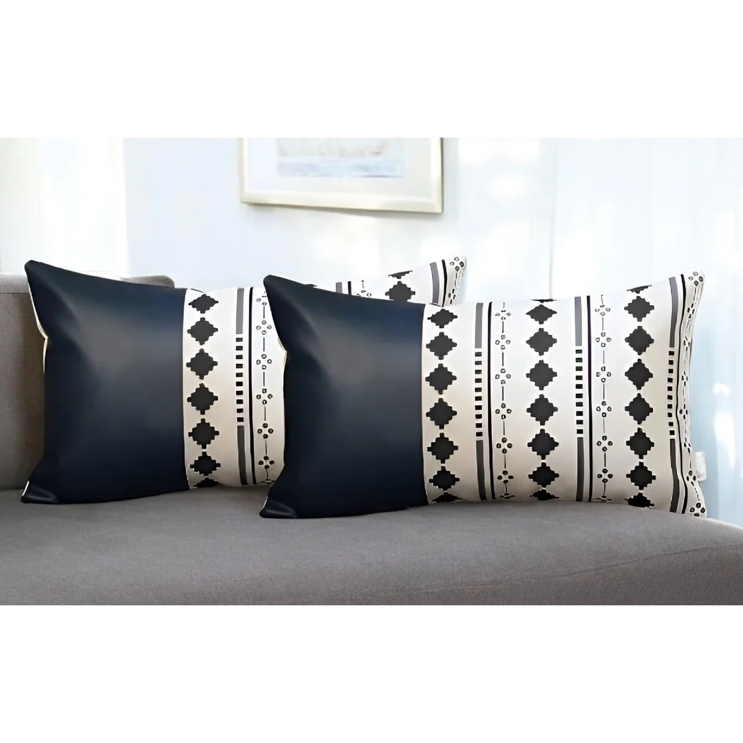 Bring a bit of fashion and zip to your space with this eye-catching and comfy set of two 20" x 12" navy blue faux leather diamond zippered pillow. These great looking soft decorative pillows are expertly made of durable and long lasting faux leather in a navy blue coloration. Great to use on its own or mix with other decorations for the perfect look. A great decorative accessory for your favorite chair, to accent your sofa, or to use as part of your bed ensemble. 3.02" H x 20" W x 12" D