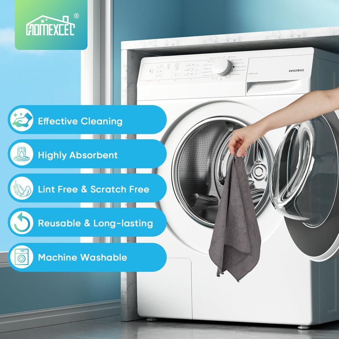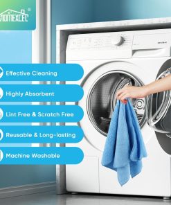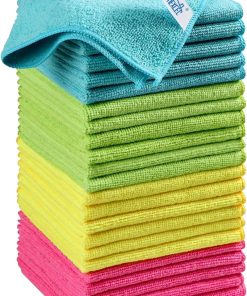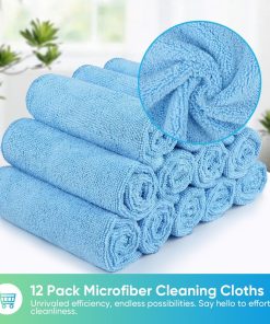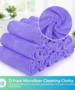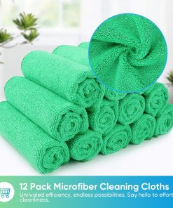 HOMEXCEL Microfiber Cleaning Cloth,12 Pack Cleaning Rag,Cleaning Towels with 4 Color Assorted,11.5"X11.5"(Green/Blue/Yellow/Pink)