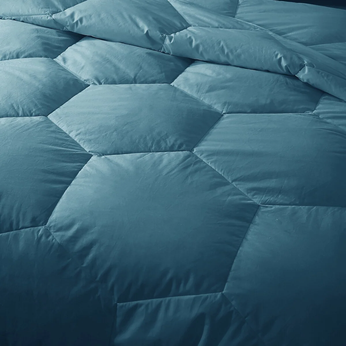 Experience the perfect blend of classic and modern design with our Honeycomb Stitch Down Alternative Comforter. The soft microfiber cover and hypoallergenic polyester fill provide year-round warmth and comfort, ensuring a comfortable sleep every night. Choose from a range of chic colors to match your style and effortlessly complete the look of your room. This machine washable comforter is easy to care for, making it a convenient addition to your bedding collection.