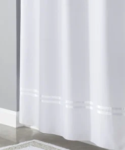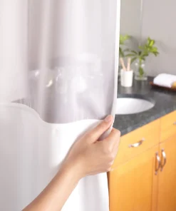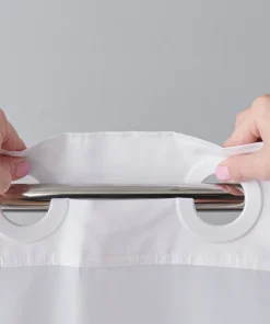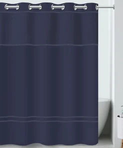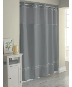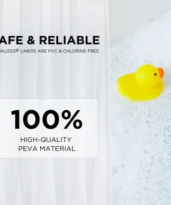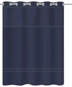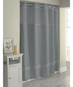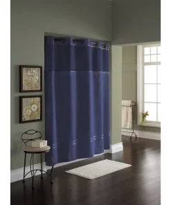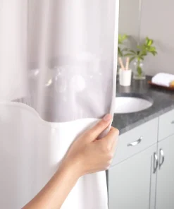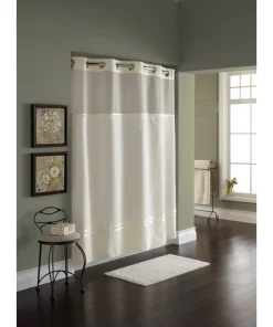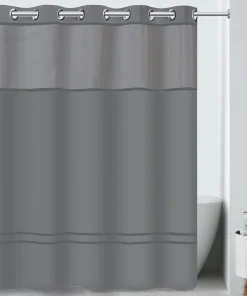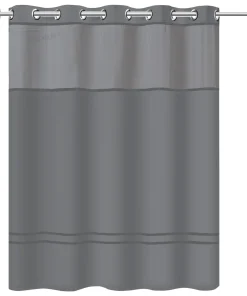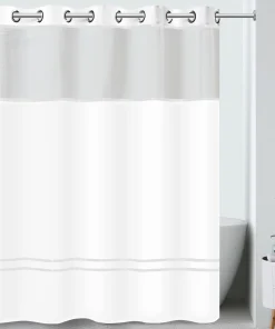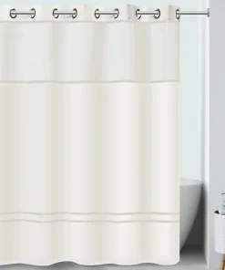 The innovative Hookless Escape Shower Curtain is designed to bring a spa-like ambiance effortlessly. The bathroom curtain set includes the fabric shower curtain, built-in rings, fabric liner, and a sheer window, providing a complete solution for your bathroom. This shower curtain set offers a 3-in-1 value, transforming your bathroom decor in seconds without the hassle of hooks. With no need to remove the rod, the shower curtain slides right on with its FLEX-ON built-in rings that won’t rust. The It’s A Snap! shower liner, is made of polyester fabric, and snaps on and off easily for quick replacements and water repellence. Our shower curtain features a sheer window for natural light, maintaining privacy while reducing humidity and moisture. Our OEKO-TEX certified Hookless shower curtains, are crafted with safety in mind. Maintenance of these bath curtains is also a breeze; simply shake off excess water after each use and hang the curtain to air dry. For cleaning, machine wash the curtain and liner on a gentle cycle and replace the liner as needed. After each use shake off the water let the curtain hang freely outside the tub and allow it to air dry.