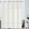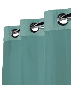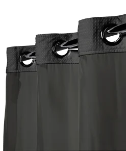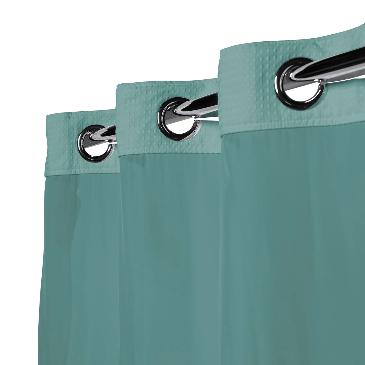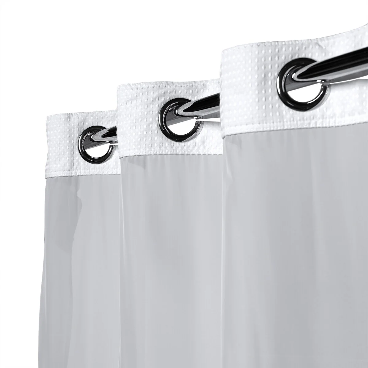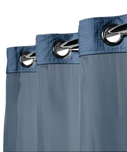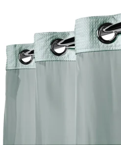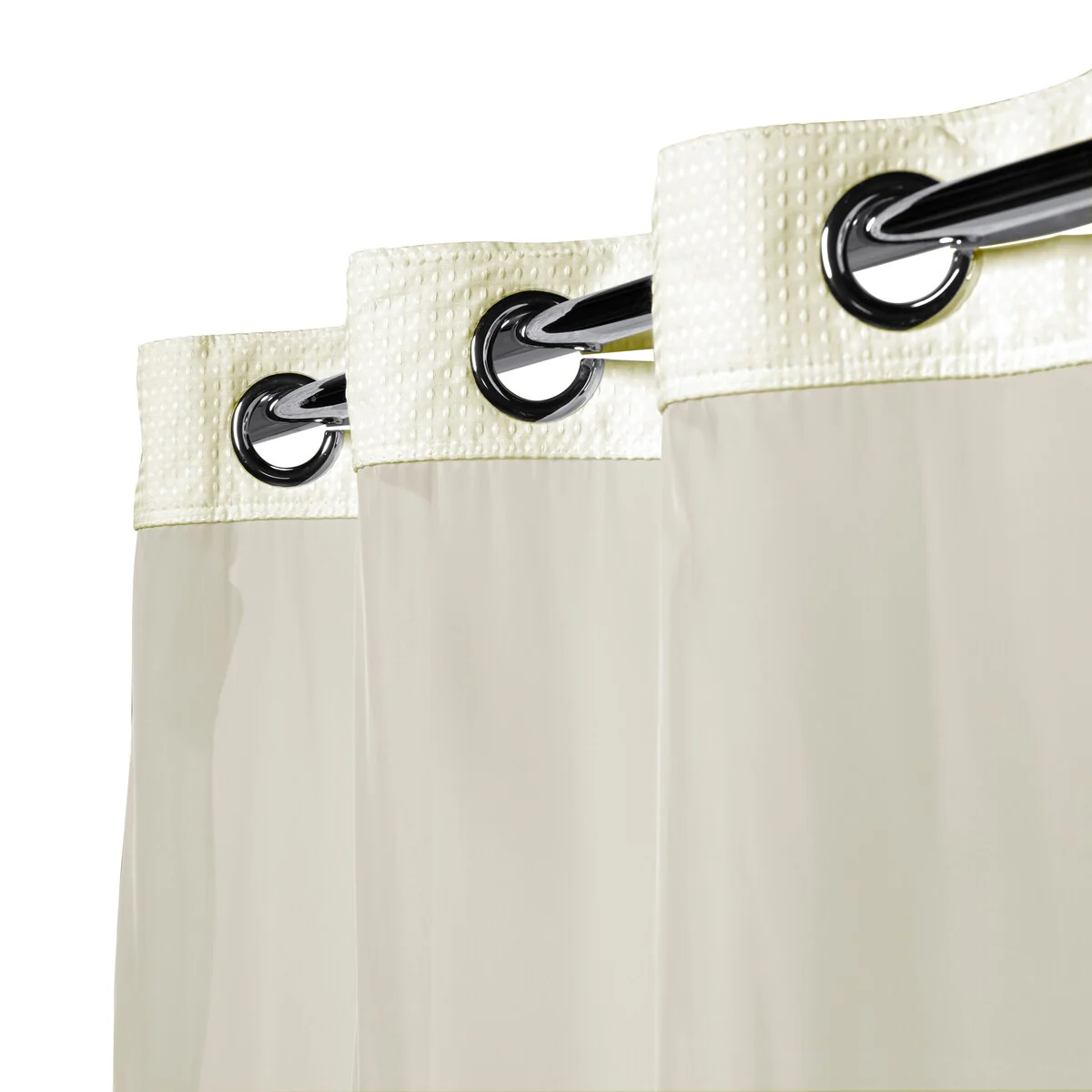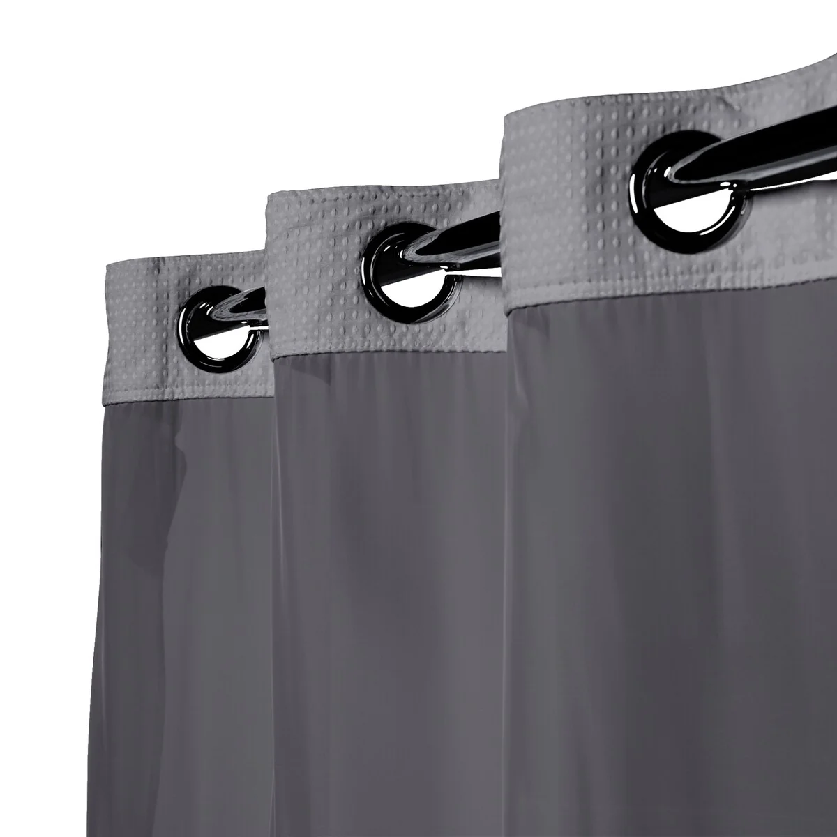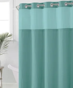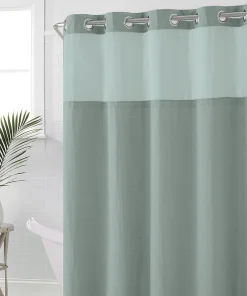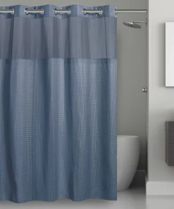 The innovative Hookless Waffle Shower Curtain is designed to enhance your space effortlessly. The bathroom curtain set includes the fabric shower curtain, built-in rings, fabric liner, and a sheer window, providing a complete solution for your bathroom. This shower curtain set offers a 3-in-1 value, transforming your bathroom decor in seconds without the hassle of hooks. With no need to remove the rod, the shower curtain slides right on with its FLEX-ON built-in rings that won’t rust. The It’s A Snap! shower liner, is made of polyester fabric, and snaps on and off easily for quick replacements and water repellence. Our shower curtain features a sheer window for natural light, maintaining privacy while reducing humidity and moisture. Our OEKO-TEX certified Hookless shower curtains, are crafted with safety in mind. Maintenance of these bath curtains is also a breeze; simply shake off excess water after each use and hang the curtain to air dry. For cleaning, machine   wash the curtain and liner on a gentle cycle or replace the liner as needed. After each use shake off the water let the curtain hang freely outside the tub and allow it to air dry.    Â