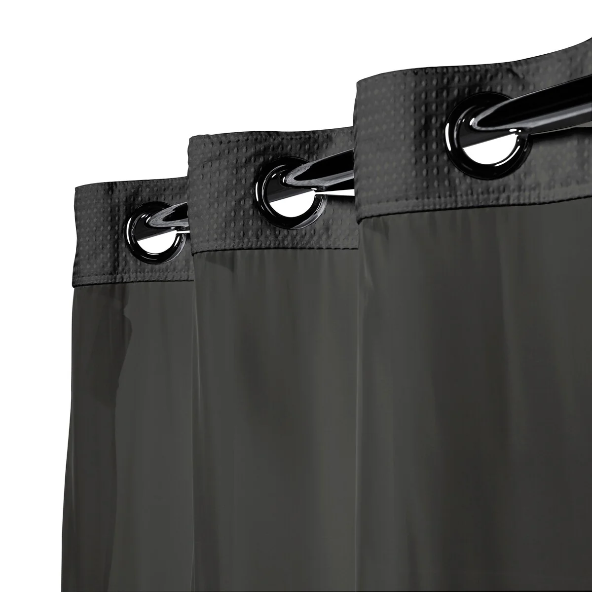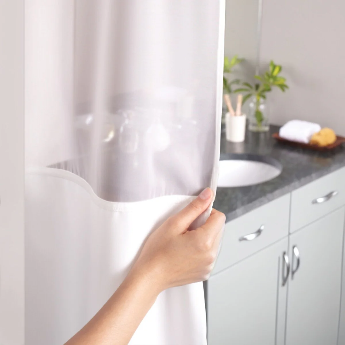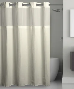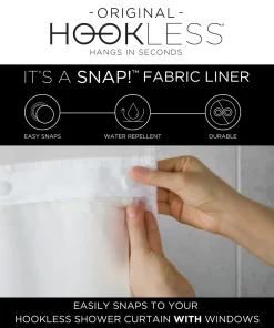 - Our Hookless shower curtain with snap in liner includes a sheer window that allows natural light while maintaining privacy, and reducing humidity and moisture for an inviting shower experience   Â