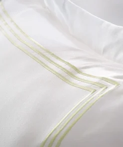 Hotel Collections‘ three-piece duvet cover set will add a modern and stylish look to your bedroom or guest room. These beautiful white covers are accented with attractive stitching in your choice of color. In addition to the elegant and chic look, this duvet cover set features 300-thread-count cotton, ensuring comfort and durability.Â