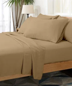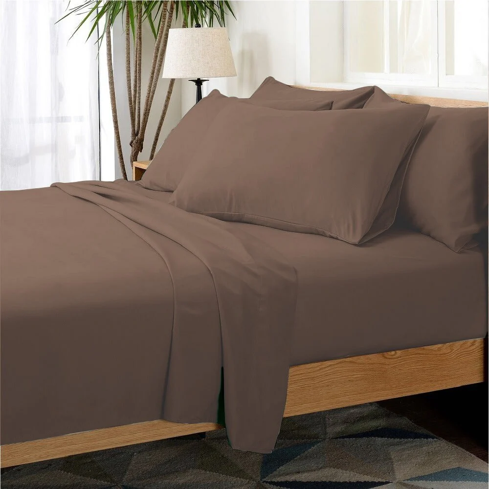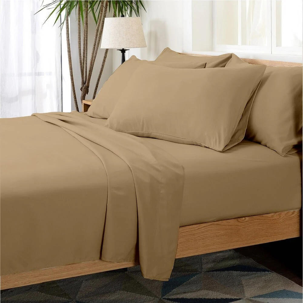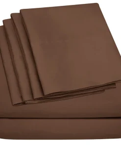 Inexpensive sheets often claim to be high quality yet fall apart rapidly or worse, arrive with loose threads and even stains. At Home Goods, our Hotel Collection series luxury bedding sets are made with resilient rayon-microfiber blend with a durable yet ultra-soft weave and attention-to-detail that adds a truly luxurious touch.Made with a superior double brushed technique, each of our sheets for king size bed through twin sized all have a buttery soft texture that makes slipping into bed heavenly. Stain, fade and wrinkle-resistant rayon-microfiber offers a smooth, plush feel & elegant style.Incredibly simple to care for, our soft bed sheets are machine washable in cold water. Not only is our microfiber great at retaining colors, it dries quickly in the dryer. Choose from 17 rich colors to fit any decor.Our softest sheets fit wonderfully from California king bedding sets to full. The Luxury Home Hotel Collection rayon-microfiber bed sheets have 16" deep pockets & high-quality elastic that will securely fit oversized mattresses. Our hypoallergenic bed sheets will give you that soft, sleeping-on-a-cloud feel without costing you a fortune.Available in:6 Piece Full Size Sheets Set (4 pillowcases, 1 flat sheet, 1 fitted sheet)6 Piece Queen Bed Sheets Set (4 pillowcases, 1 flat sheet, 1 fitted sheet)6 Piece King Sheets Set (4 pillowcases, 1 flat sheet, 1 fitted sheet)6 Piece California King Sheets Sets (4 pillowcases, 1 flat sheet, 1 fitted sheet)At Luxury Home, it’s our mission to bring you the best bed sheets using only the finest quality materials & excellent craftsmanship for luxury you can afford. If for any reason you don’t absolutely love your luxury bedding set, we’ll make it right.Material40% Rayon from Bamboo – 60% MicrofiberMade in China