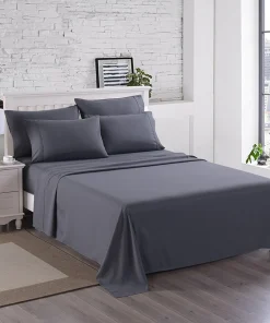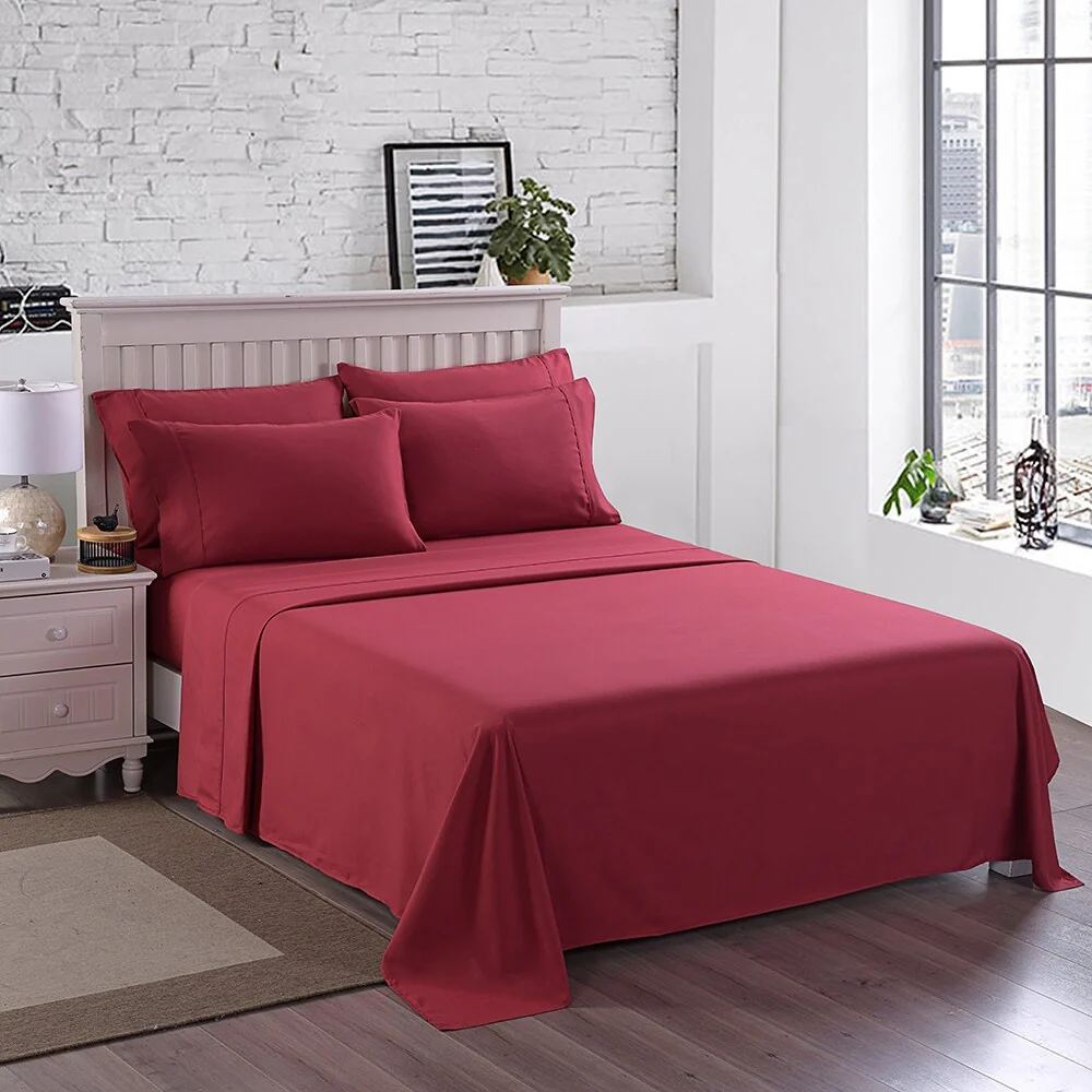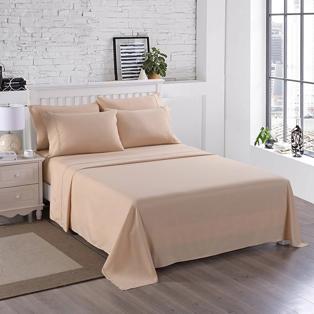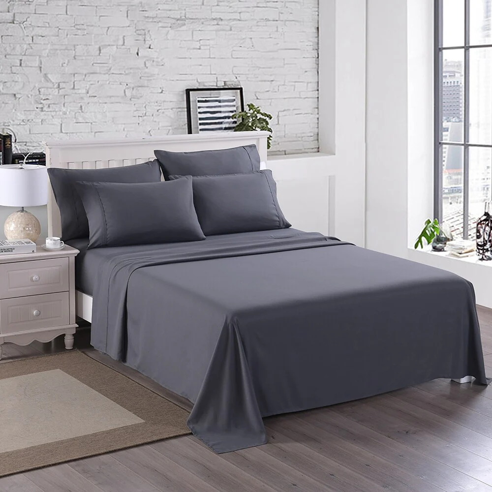 Experience the luxurious comfort of our Hotel Luxury 6-piece Bed Sheets Set. Made with 100% Brushed Microfiber, this solid-color sheet set includes a flat sheet, fitted sheet, and pillowcases that will provide you with a cozy and peaceful sleep. The soft and neutral-colored solid-design of the bed sheet set can easily blend with most floors and home furniture, creating a luxurious ambiance that will make you feel relaxed and happy.