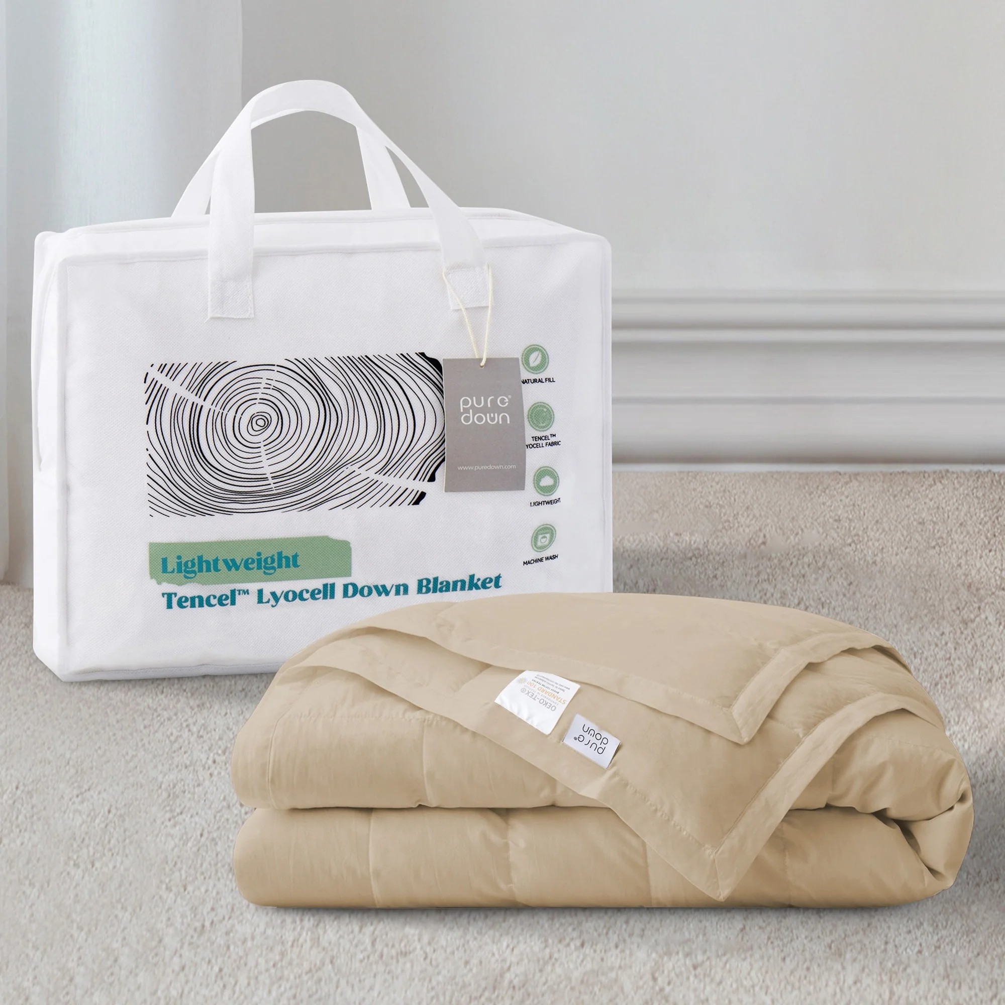 Indulge in the perfect balance of warmth, breathability, and softness with our luxurious Tencelâ„¢ Lyocell Down Blanket. Crafted for all-season comfort, this blanket is an ideal companion for cozy autumn and winter nights, offering gentle warmth without feeling heavy. The combination of 58% silky-soft Tencel Lyocell and 42% polyester ensures a soft, noiseless feel against the skin, while also promoting breathability to maintain a comfortable sleeping temperature throughout the night.