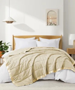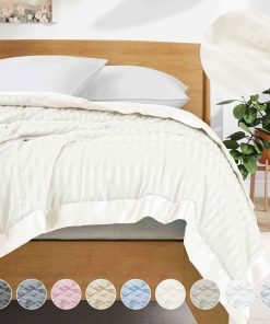 Hotel Quality Luxury Lightweight Jacquard Soft Bed Blanket with Satin Trim, Cozy and Warm