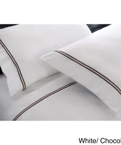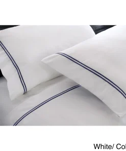 Indulge in the ultimate sleeping experience with the Hotel Suite four-piece sheet set. Combining the durability of cotton and polyester, this luxurious set boasts a 1200 thread count for unparalleled softness and comfort. The stylish embroidery adds a touch of sophistication to your bedroom decor. This set includes one flat sheet, one fitted sheet, and two pillowcases, all coordinating in color for a cohesive look.