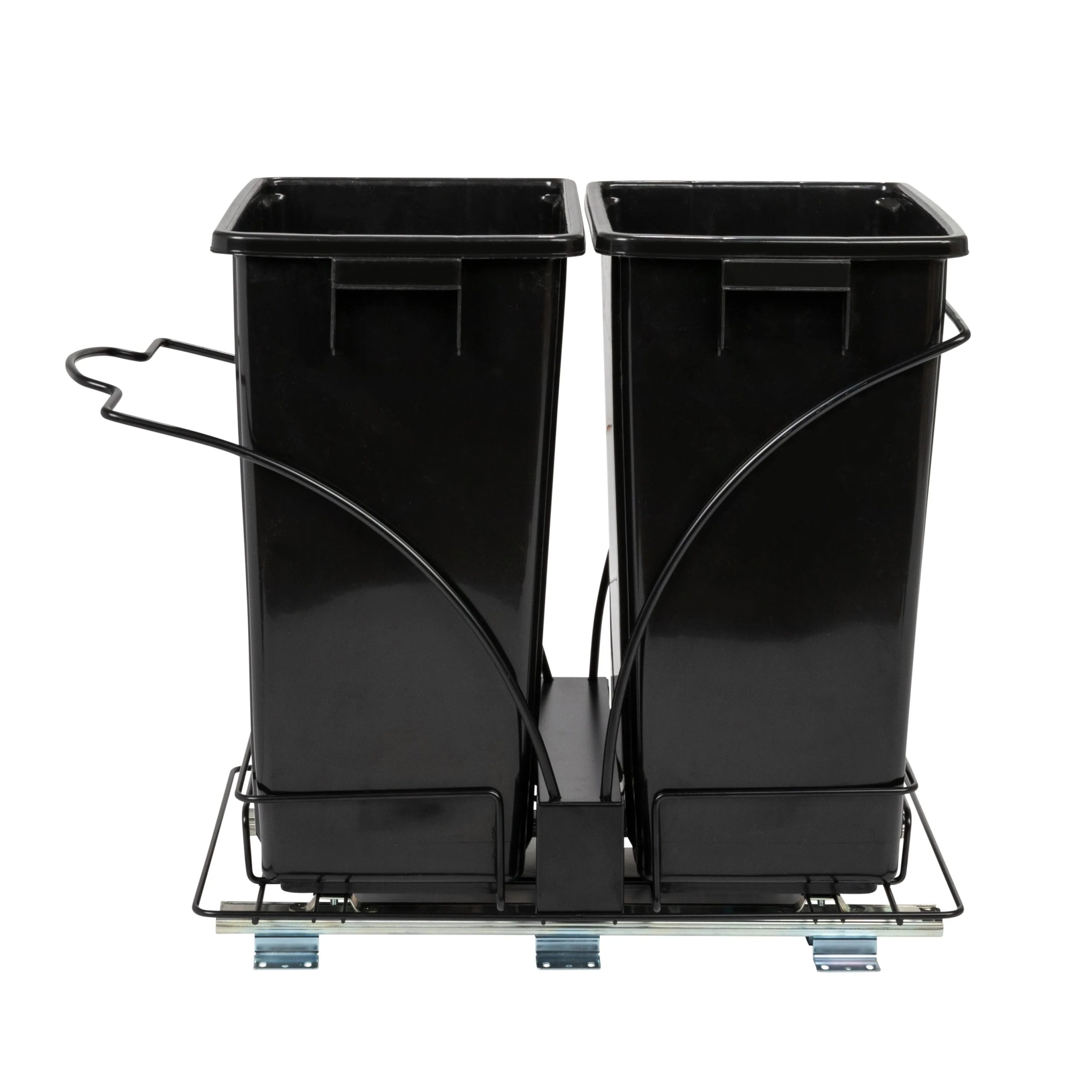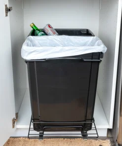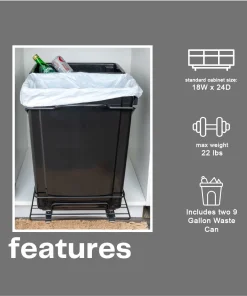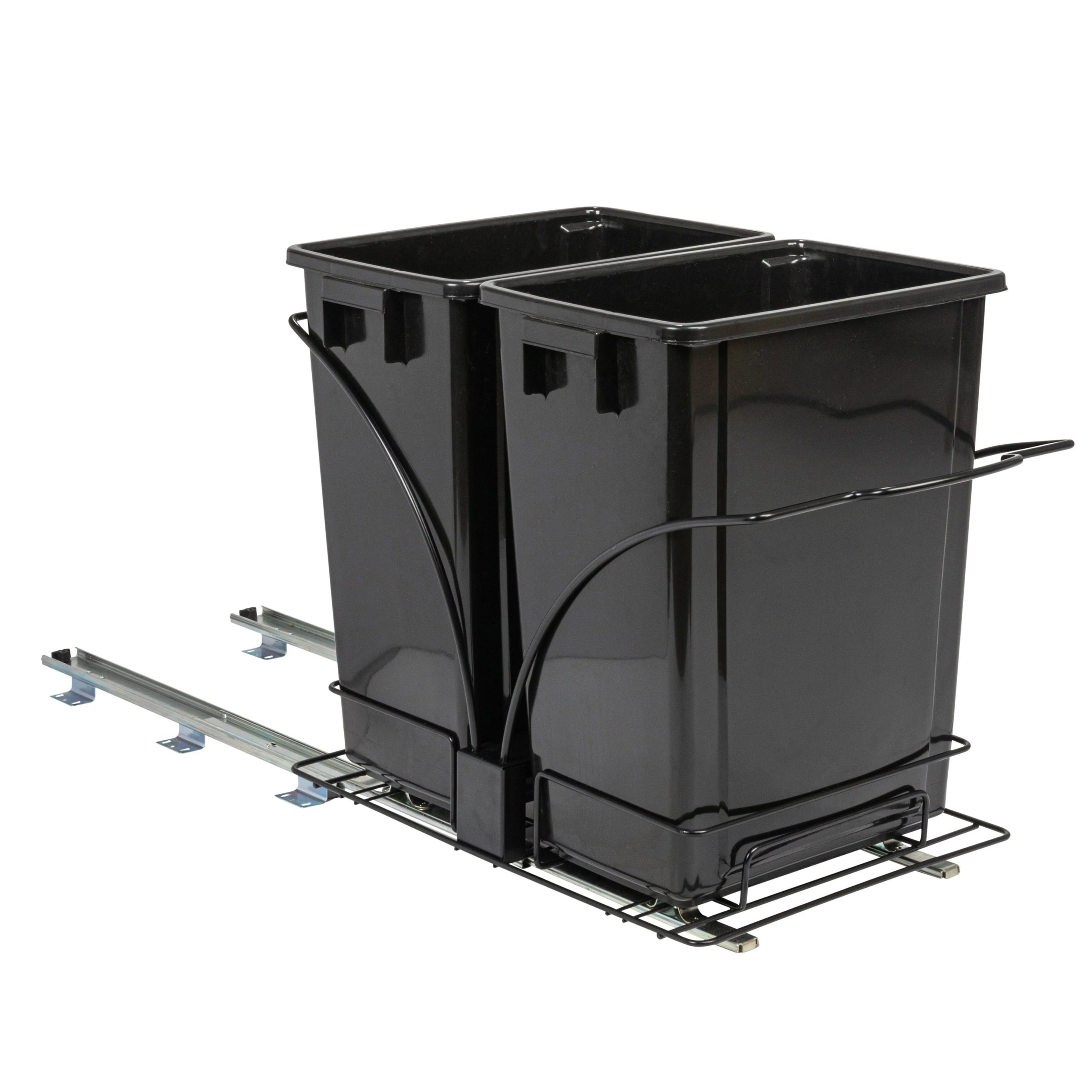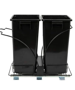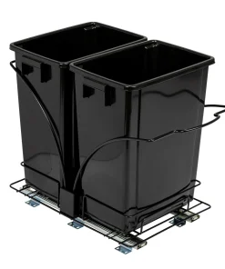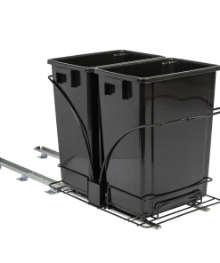 This innovative set of trash cans is designed to provide a discreet and convenient garbage and recycling solution for any kitchen. With its chrome-plated steel base and easy-mount, full-extension, ball-bearing sliding mechanism, it combines functionality with a sleek design. This set of plastic waste bins is cleverly designed to keep garbage out of sight. With a chrome-plated steel base and a full-extension, ball-bearing sliding mechanism, it allows the trash cans to easily slide out for convenient disposal, while keeping them discreetly hidden under cabinets. Designed to fit most standard kitchen cabinetry, the steel framework can be mounted directly onto hard surfaces. Installing it is a simple process, as all the necessary mounting hardware is included. Follow the provided instructions, and the trash cans will be ready for use in no time.