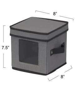 This saucer storage box provides a way to keep all of your delicate saucers in one place. Perfect for someone who prides themselves on their collection of special occasion dinnerware, this storage box will keep them protected and easy to access. This storage box is a space-saver even while not in use. The frame can be stacked when in use to maximize storage space or folded flat for compact storage in your china cabinet, kitchen, hallway closet and other storage spaces. The sturdy sides protect dinnerware from external factors, while the felt cushions prevent the plates from chipping while in storage. This storage box can hold up to 12 saucers with a 7-inch diameter weighing up to 25 pounds. A pair of reinforced handles on either side adds comfort while carrying and makes retrieving the box easier as well. With the box’s clear plastic windowed panel, finding the right set of saucers among other storage boxes is easy. No need to sift through various boxes before finding your favorite set.