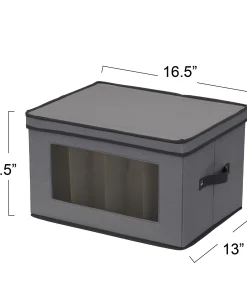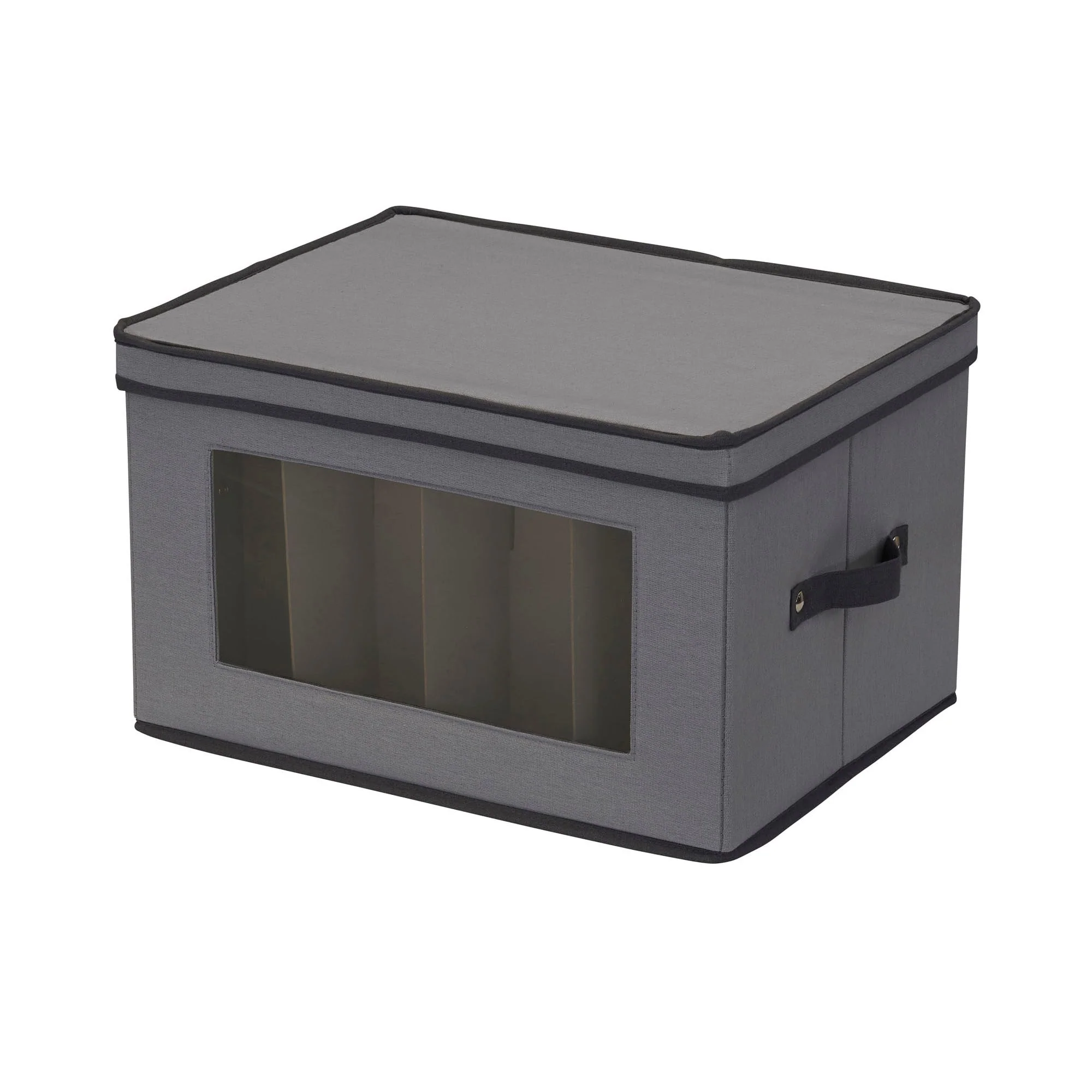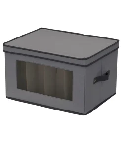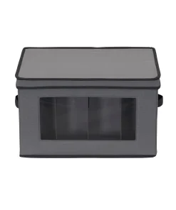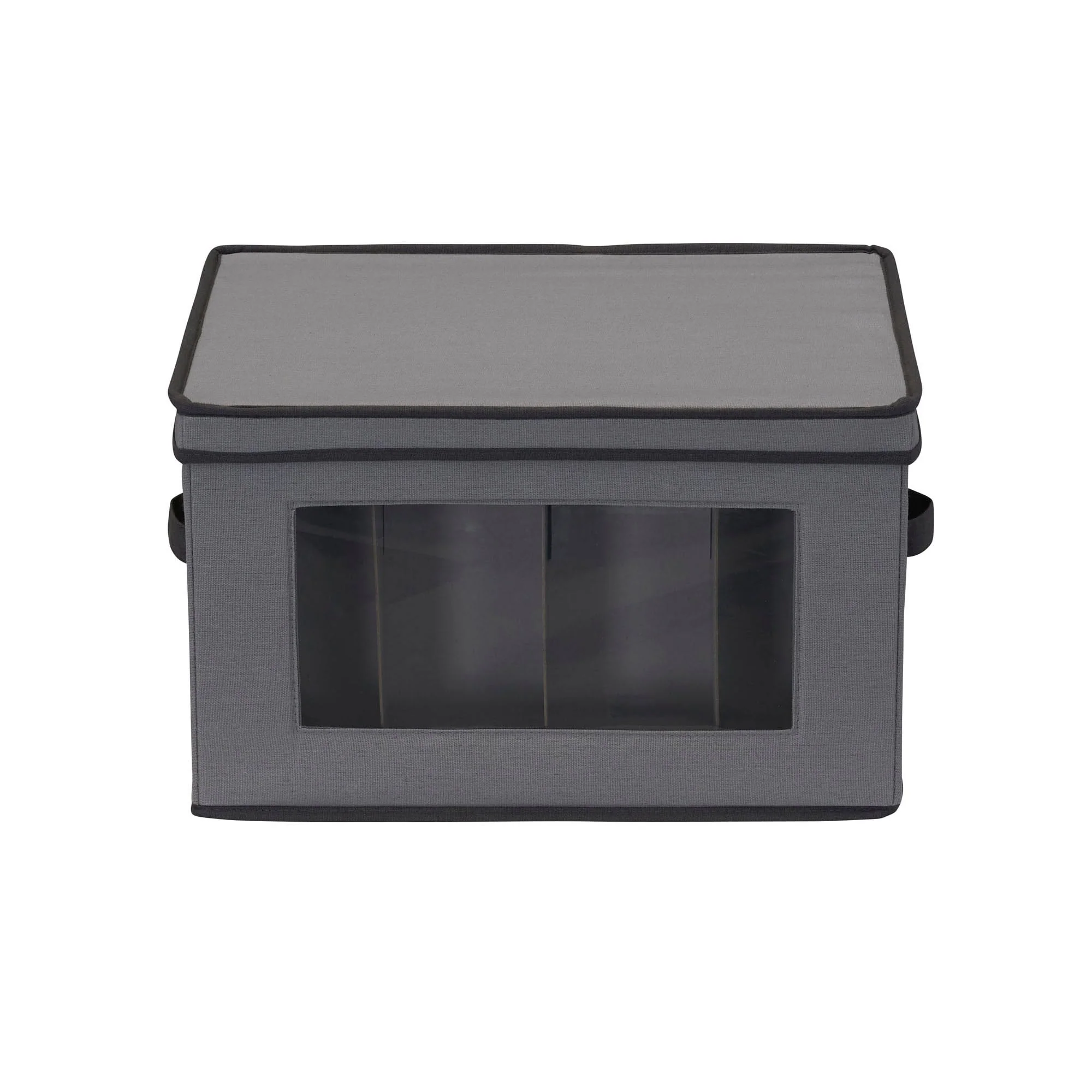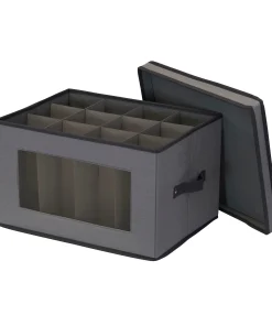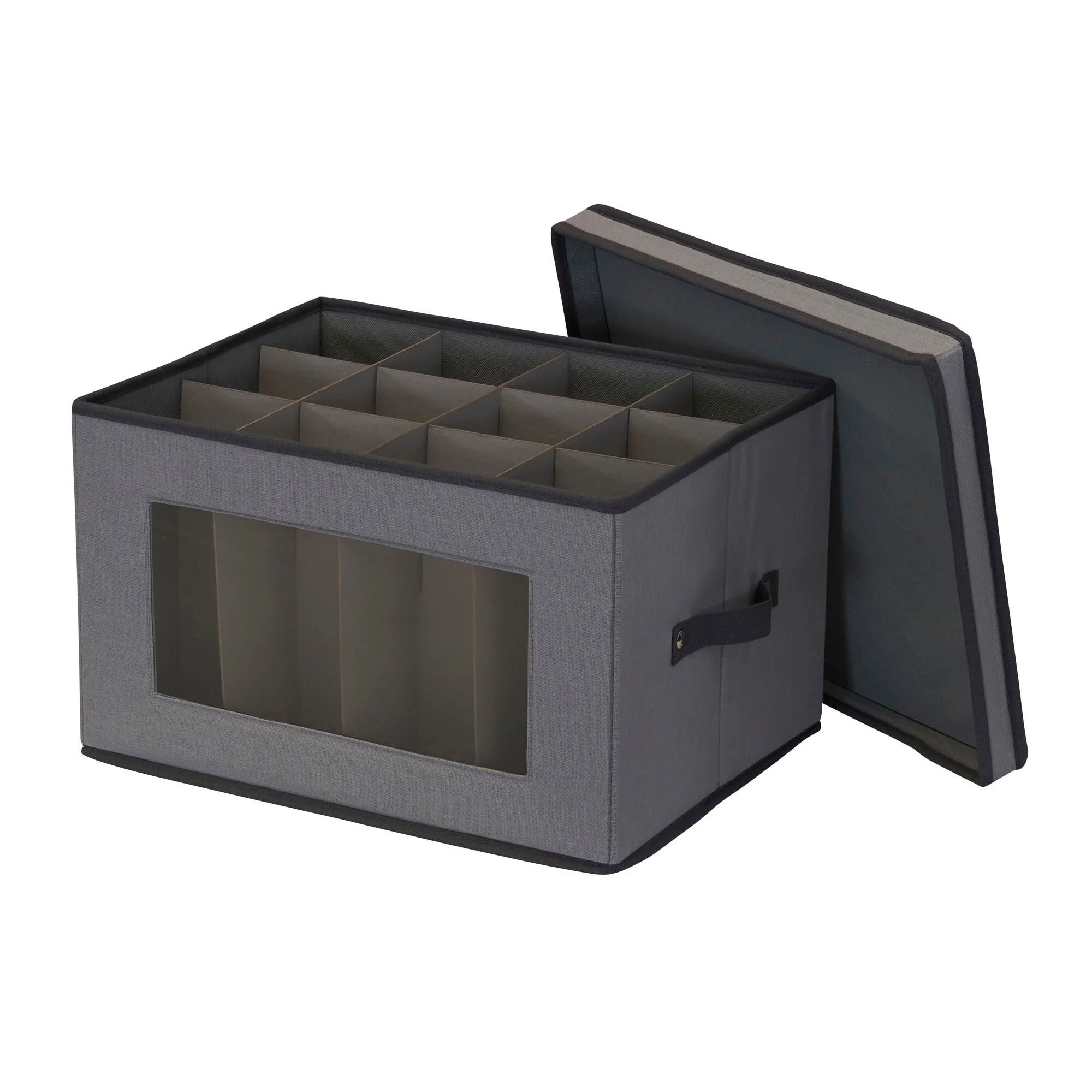This stemware storage box is an intuitive way to keep your special occasion glassware safe and stored throughout the year. Getting ready for the holidays or your next party will be quick and stress-free with the inclusion of this helpful storage box. The box’s sturdy frame is made of lightweight fiberboard, which provides support and protection. The lightweight material and 2 riveted handles make carrying this box in and out of storage hassle-free. No need to sort through various boxes to find your favorite glassware, either: a clear PEVA window on the front displays the box’s contents and saves you time. Within the box are 12 sections. Each 4" x 4" section can hold a variety of specialty glassware or other delicate items up to 10" tall. This provides just the right amount of space to hold tall wine glasses or wider goblets while also keeping the items secure. A fully removable flat lid makes cleaning up afterwards quick and easy. While not in use, the box can also be folded for compact storage. This goblet chest storage box has a wide variety of potential uses. It can be used for your favorite special occasion glasses and mugs, but also hold other fragile items such as taller figurines and collectibles. With the use of this storage box, your more delicate items will remain safe, organized and easy to find.