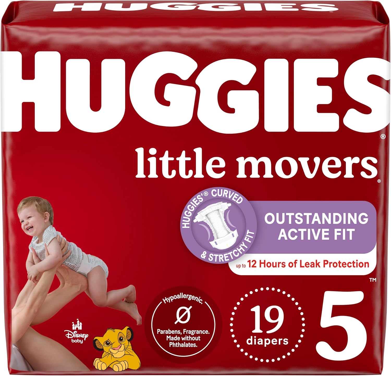 Huggies Size 5 Diapers, Little Movers Baby Diapers, Size 5 (27+ lbs), 120 Count (2 Packs of 60)
