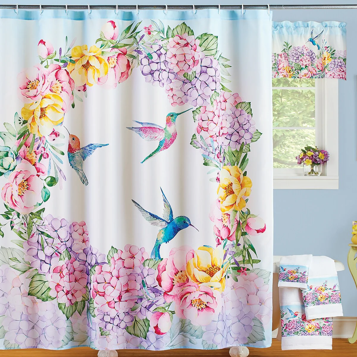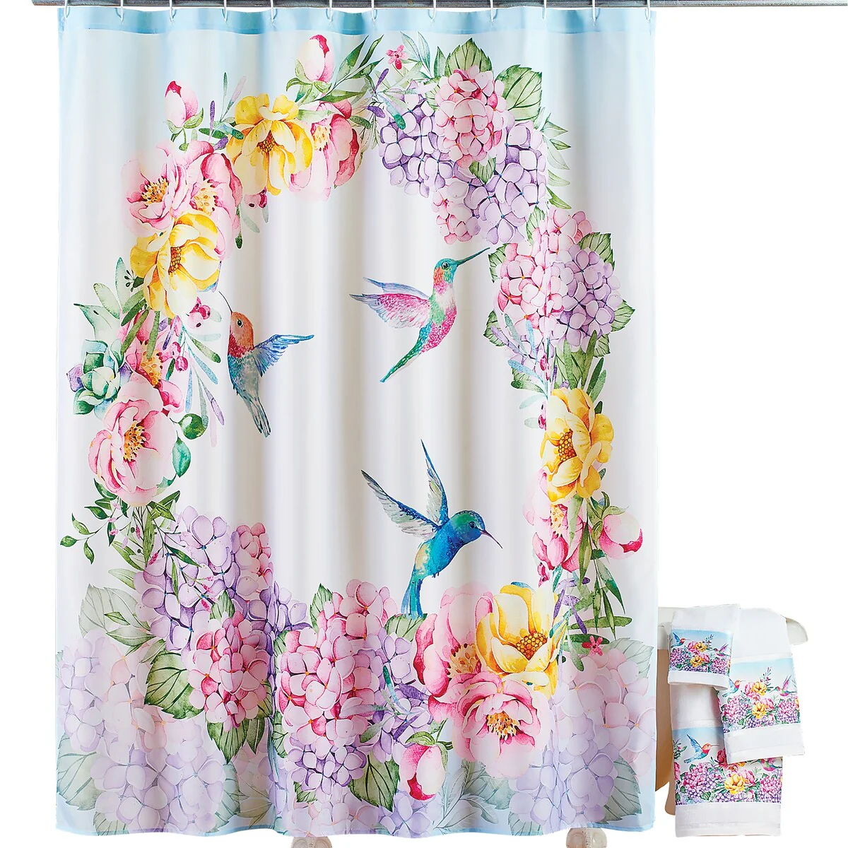 Hummingbird & Colorful Floral Wreath Print Shower Curtain
