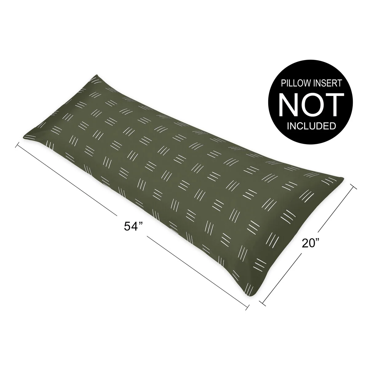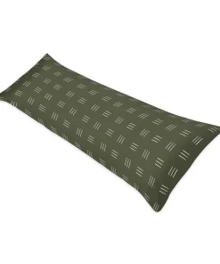 Hunter Green Boho Mudcloth Body Pillow Case White Bohemian Woodland Tribal Southwest Mud Cloth Hatch Gender Neutral Safari