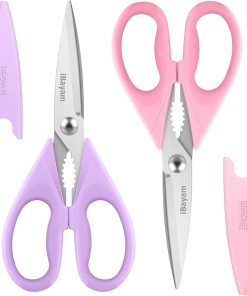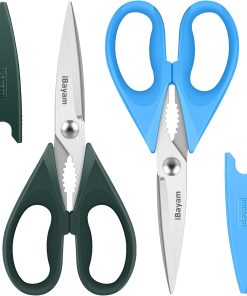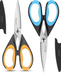 - ALL PURPOSE KITCHEN SCISSORS: Heavy duty 8.5" super sharp kitchen shears, Valued 2-Pack, comfort-Grip handles. Great All-purpose scissors for kitchen, household, new home, camper, first apartment, and outdoor general use, Great kitchen utensils set for women, men, adults, and older kids.