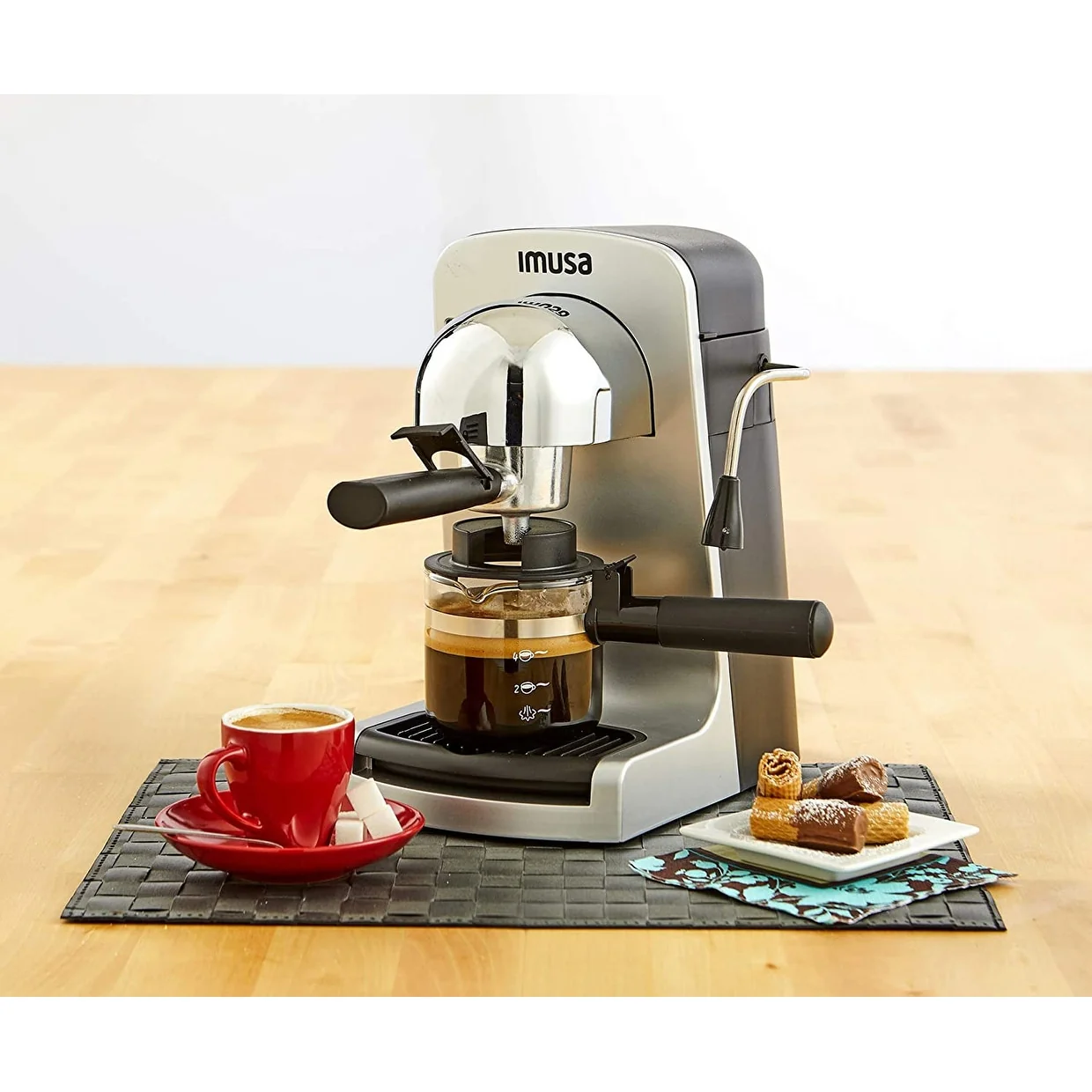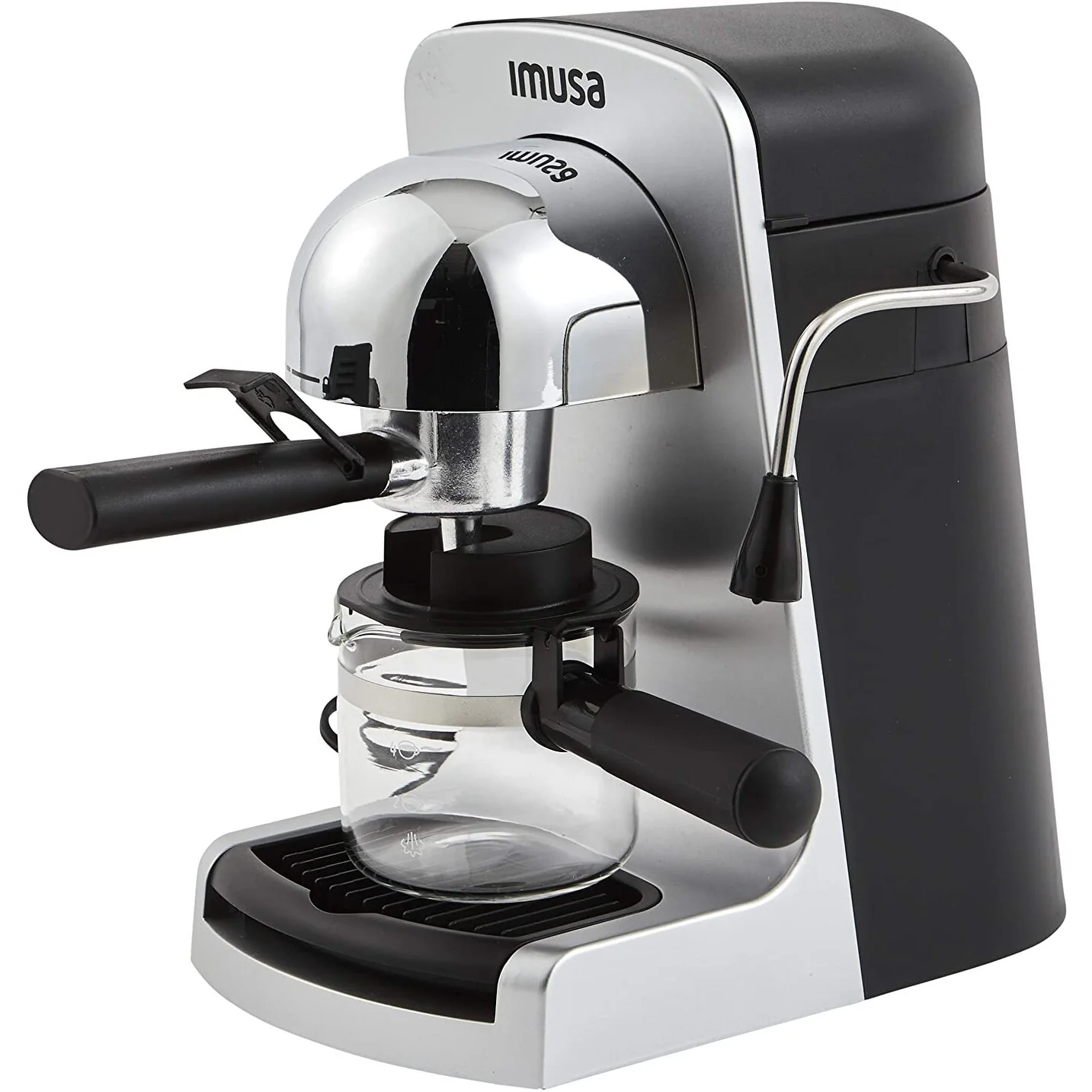 The IMUSA espresso and Cappuccino maker is the perfect appliance for your Coffee needs. Brew up to 4 servings of aromatic fresh espresso directly into the glass carafe, and you are ready to serve. Feel the coffeehouse experience with our variable steam control that allows you to froth milk to create delicious cappuccinos, macchiato, and lattes in the Comfort of your own home.Â