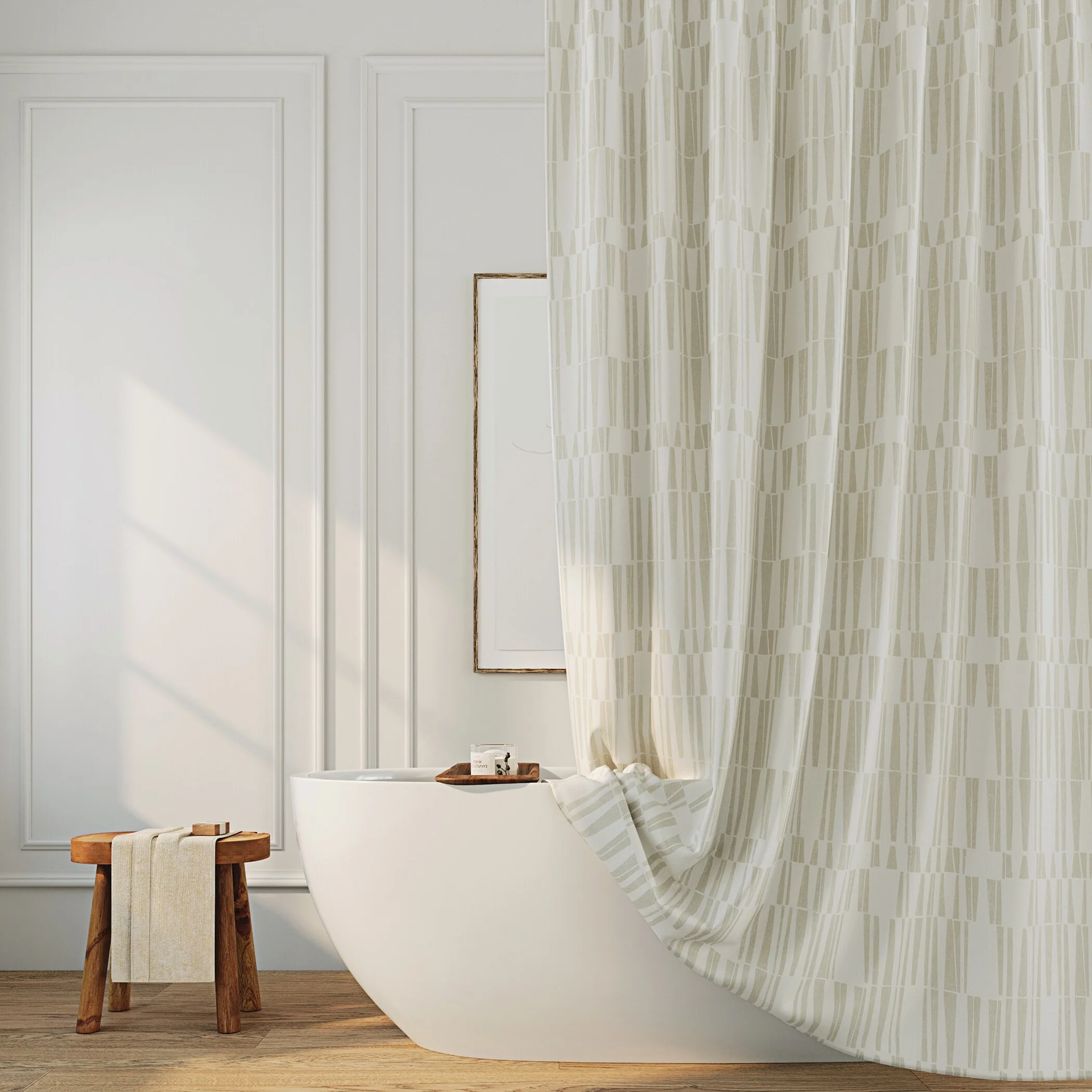Bring luxury and comfort to everyday living with the Merrow Shower Curtain by Indigo Road, a brand founded by renowned designer, HGTV star, and real estate broker Egypt Sherrod. Guided by her belief that your home should feel good from the inside out, this lightweight, puckered weave shower curtain with neutral and spa tones adds eye-catching texture without overwhelming the space. Soothing and spa-like, it evokes the tranquility of water and nature. For easy installation, each shower curtain comes with reinforced buttonholes. Curtain rings not included. To care for your shower curtain, machine wash cold on gentle cycle, using non-chlorine bleach when needed. Tumble dry on low heat, using a cool iron as needed.