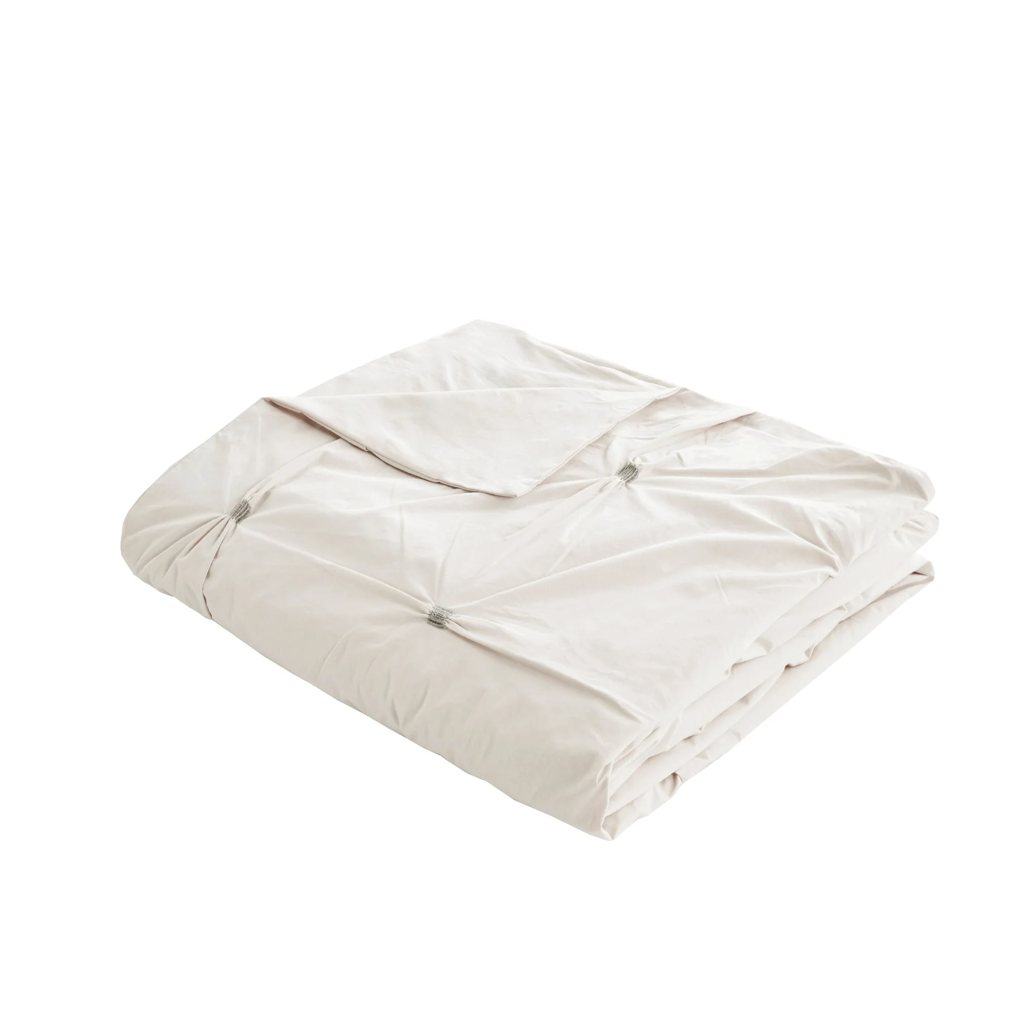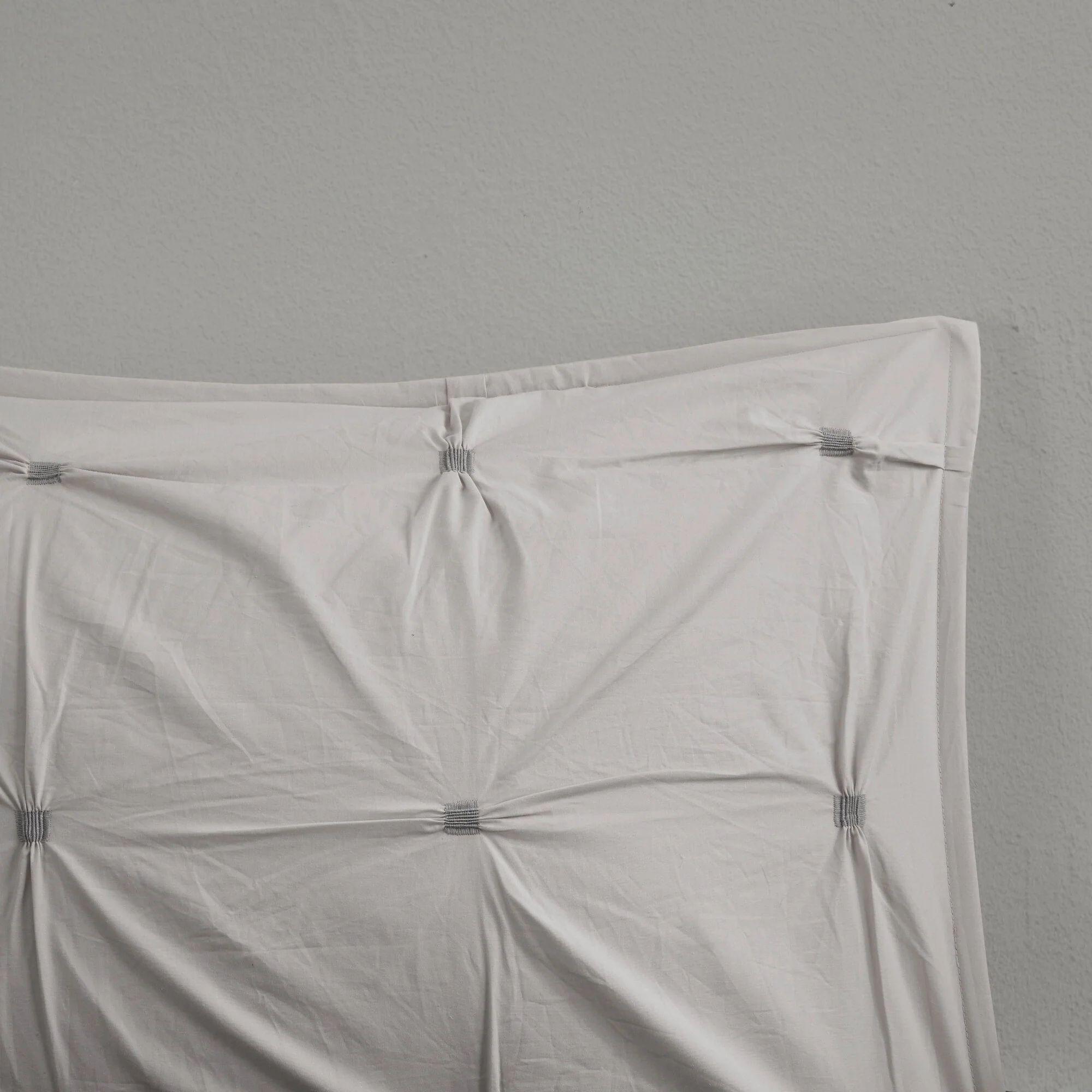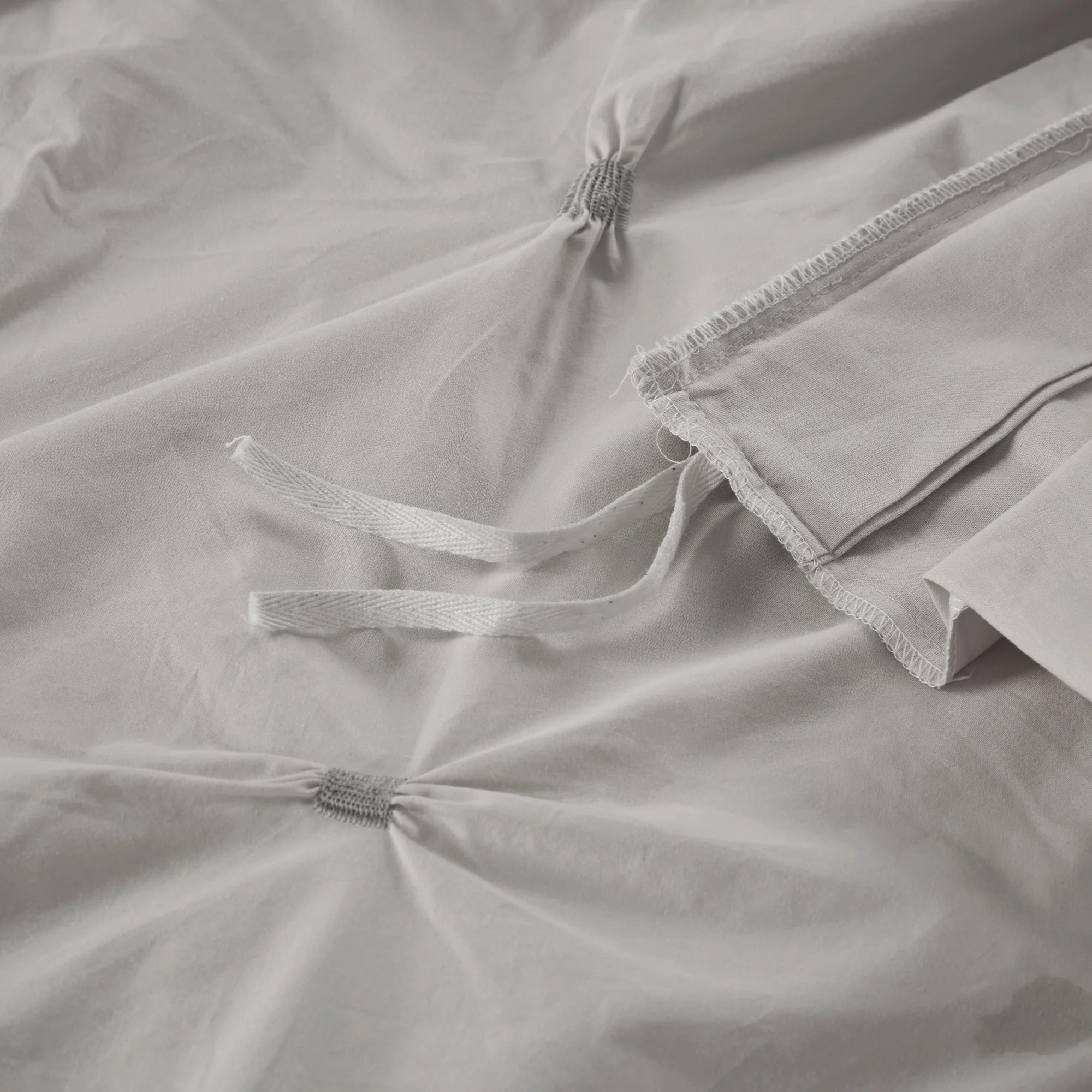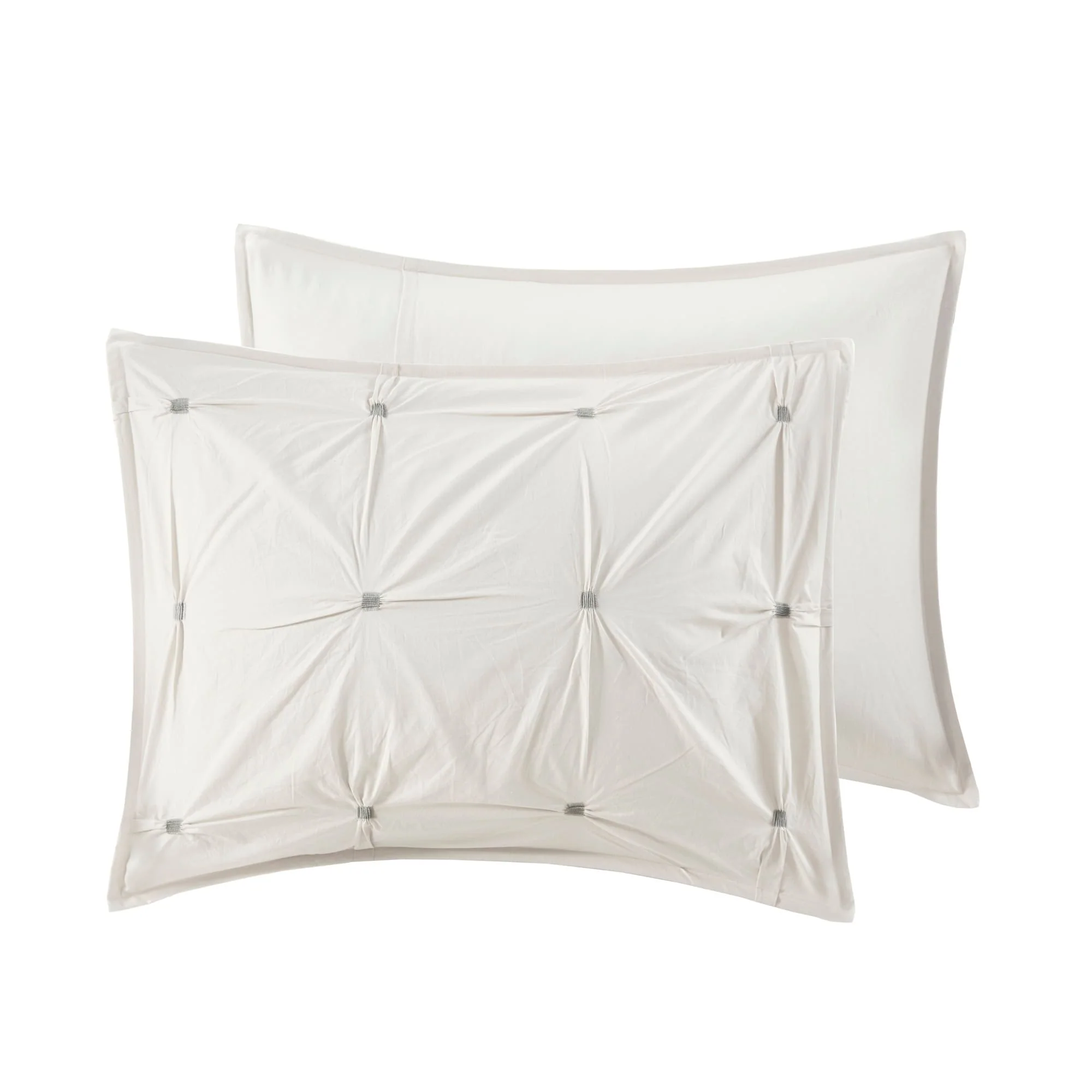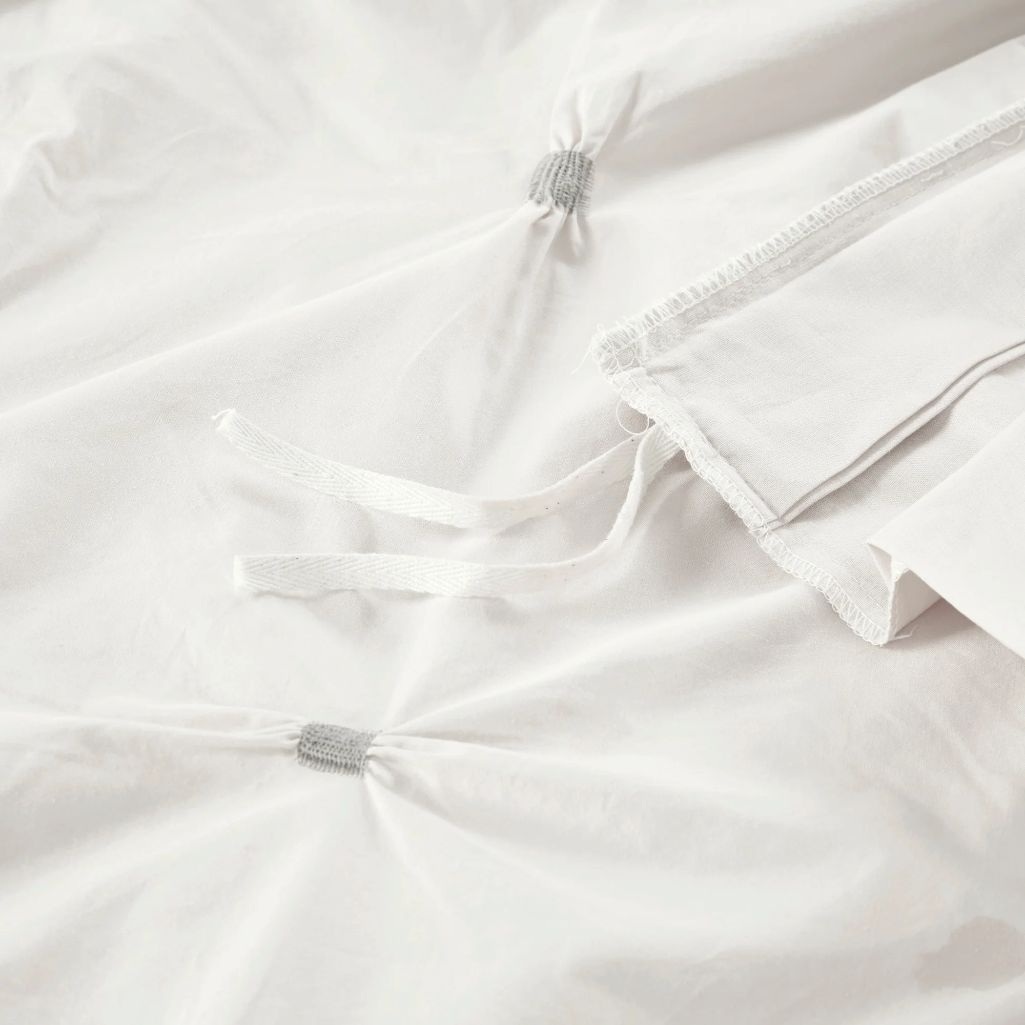 Elevate your bedroom with the INK IVY Masie 3 Piece Elastic Embroidered Cotton Duvet Cover Set. This solid cotton duvet cover features elastic and embroidered details on the face to create a tufted-inspired design with a modern flair. The 2 matching shams handsomely pair with the cotton duvet cover to complete this modern and sophisticated bedding set. This cotton duvet cover set uses an antimicrobial treatment that provides built-in freshness protection, reducing the growth of odor causing bacteria to keep fabric lasting longer. Euro shams and decorative pillows are sold separately. A button closure allows you to place a padded insert within the duvet cover and internal corner ties help prevent it from shifting (Insert is NOT included).