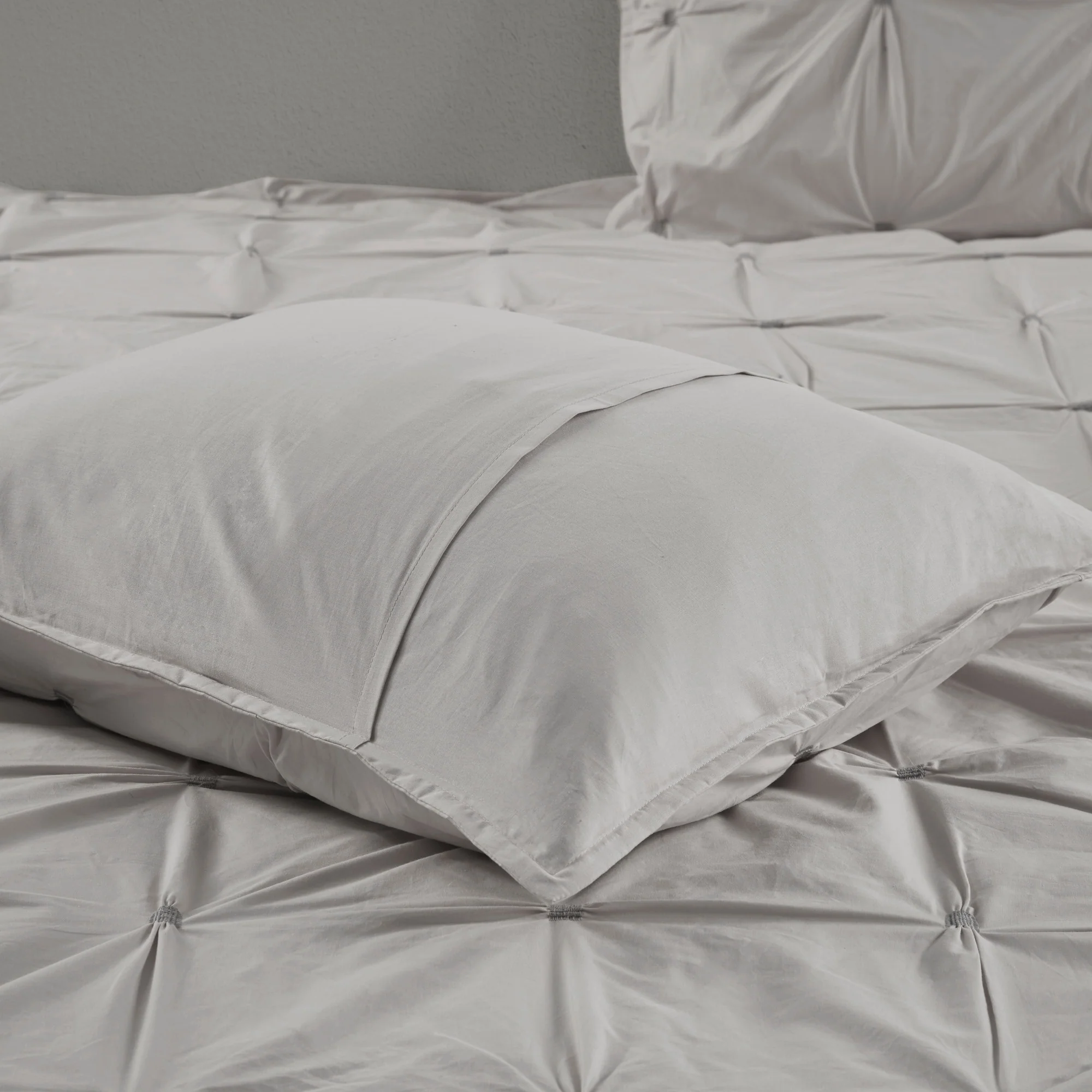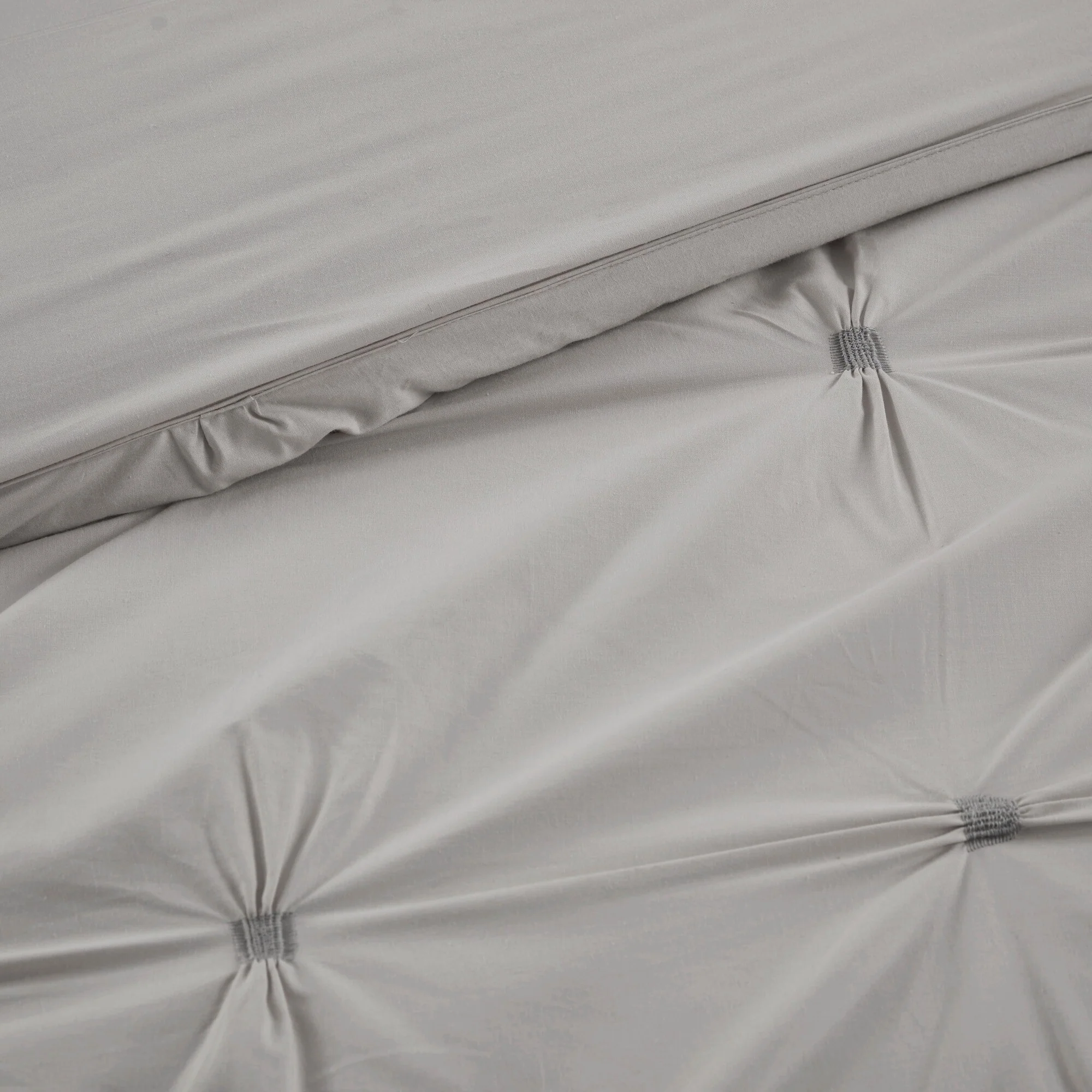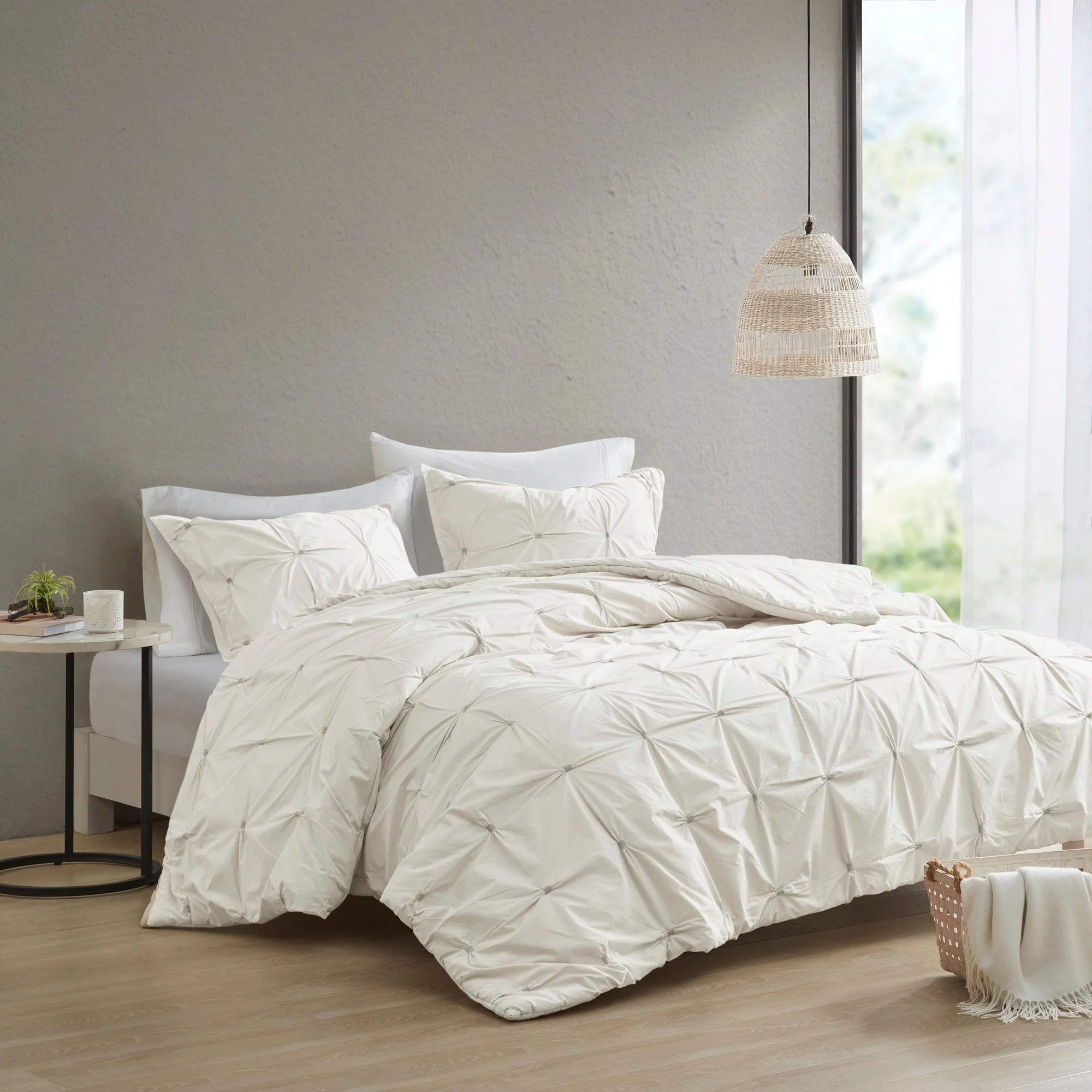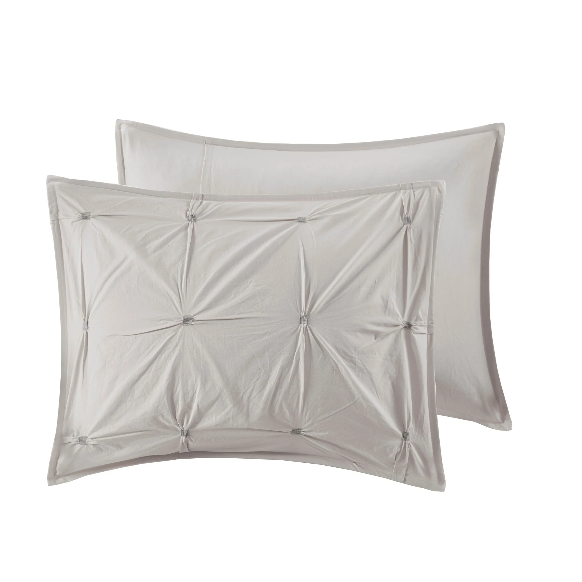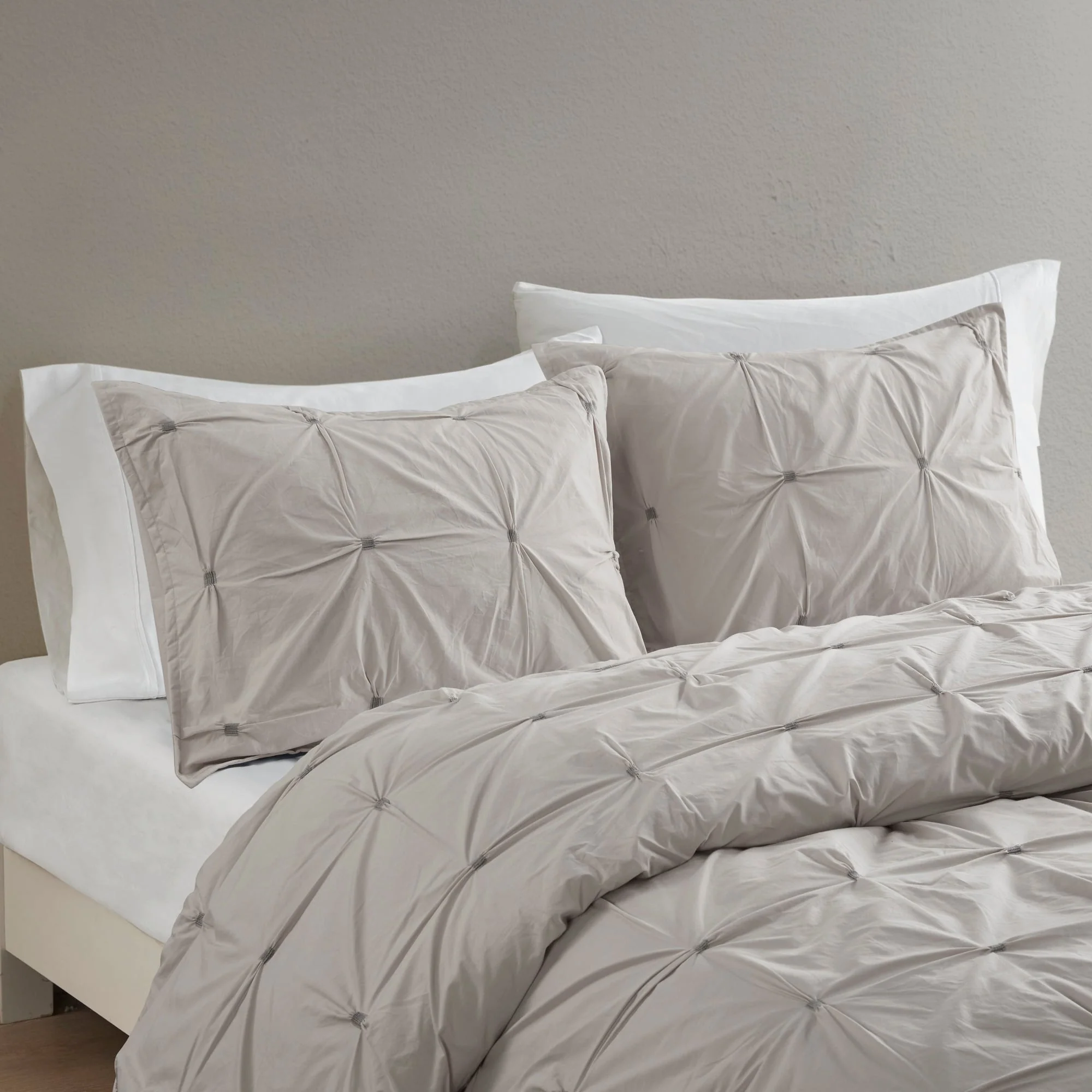 Elevate your bedroom with the INK IVY Masie 3 Piece Elastic Embroidered Cotton Duvet Cover Set. This solid cotton duvet cover features elastic and embroidered details on the face to create a tufted-inspired design with a modern flair. The 2 matching shams handsomely pair with the cotton duvet cover to complete this modern and sophisticated bedding set. This cotton duvet cover set uses an antimicrobial treatment that provides built-in freshness protection, reducing the growth of odor causing bacteria to keep fabric lasting longer. Euro shams and decorative pillows are sold separately. A button closure allows you to place a padded insert within the duvet cover and internal corner ties help prevent it from shifting (Insert is NOT included).