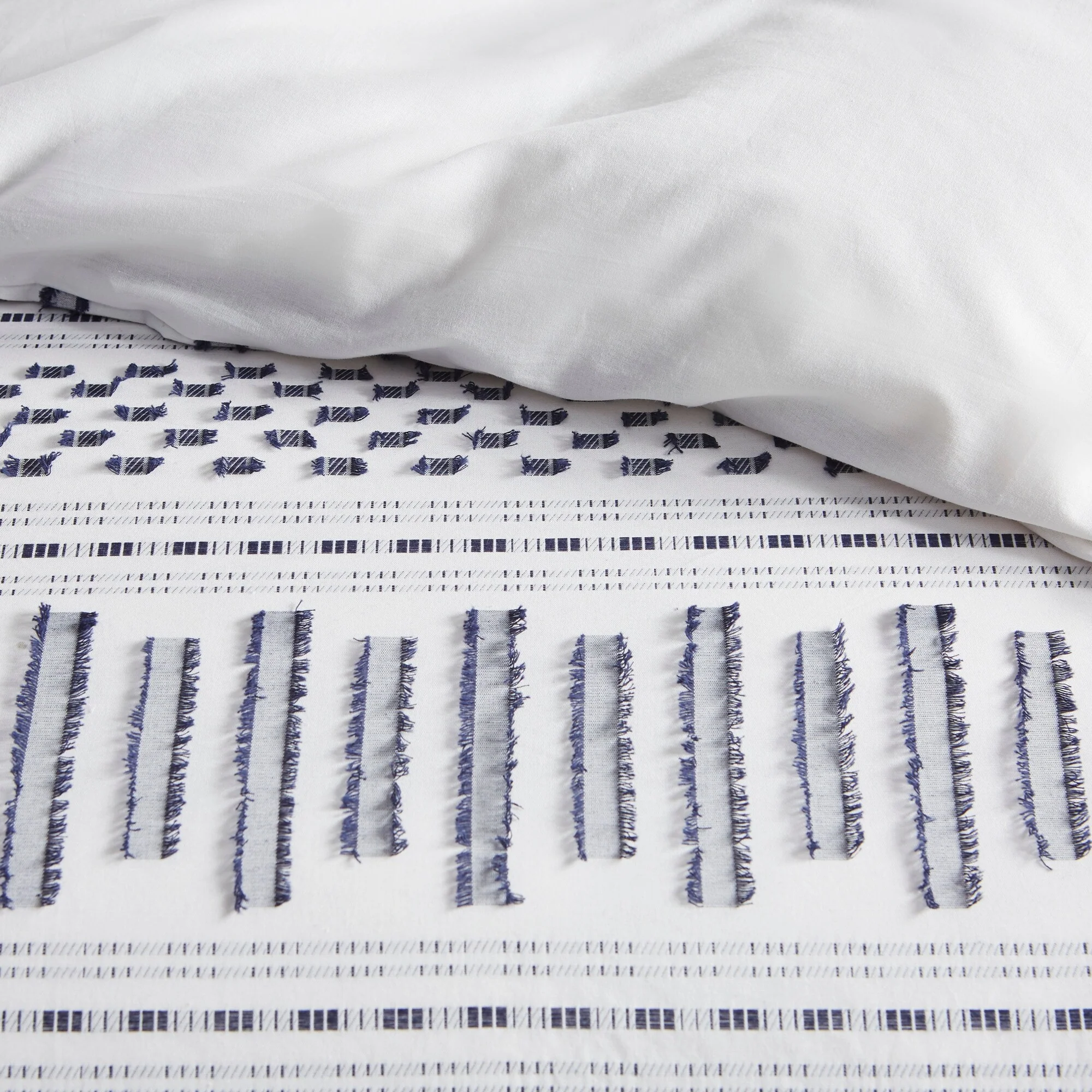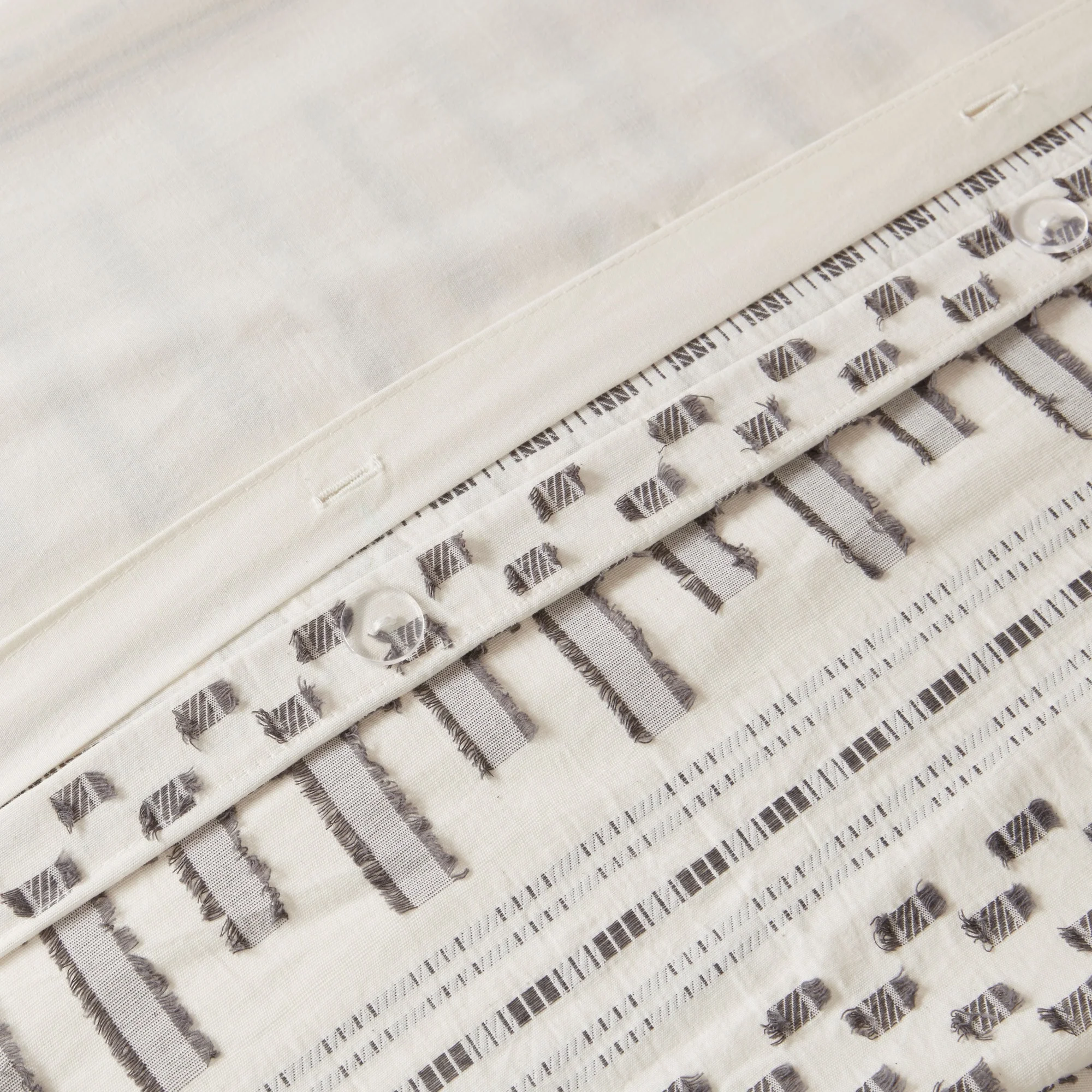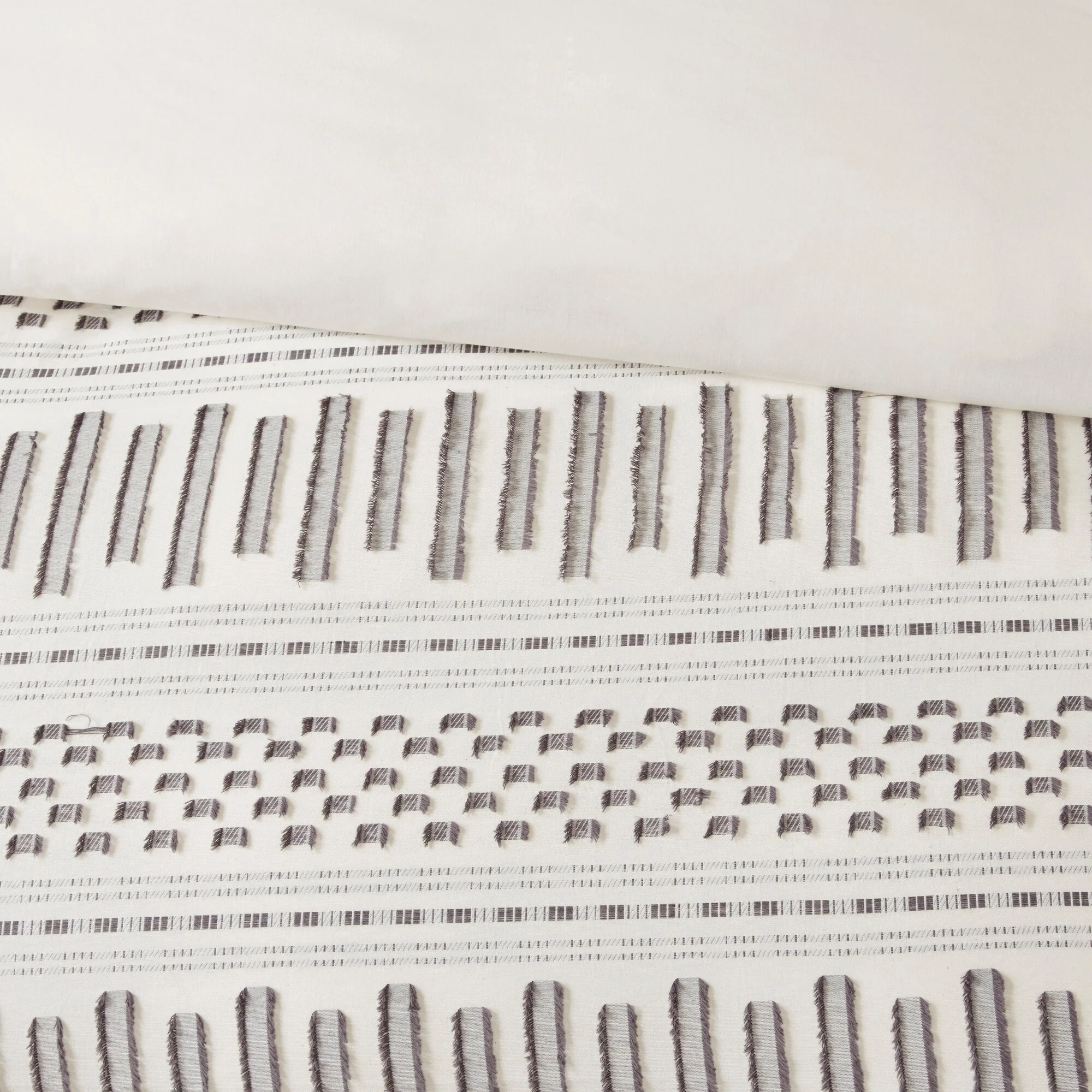 - Casual 100-percent cotton jacquard duvet set with eyelash look woven details in horizontal stripes