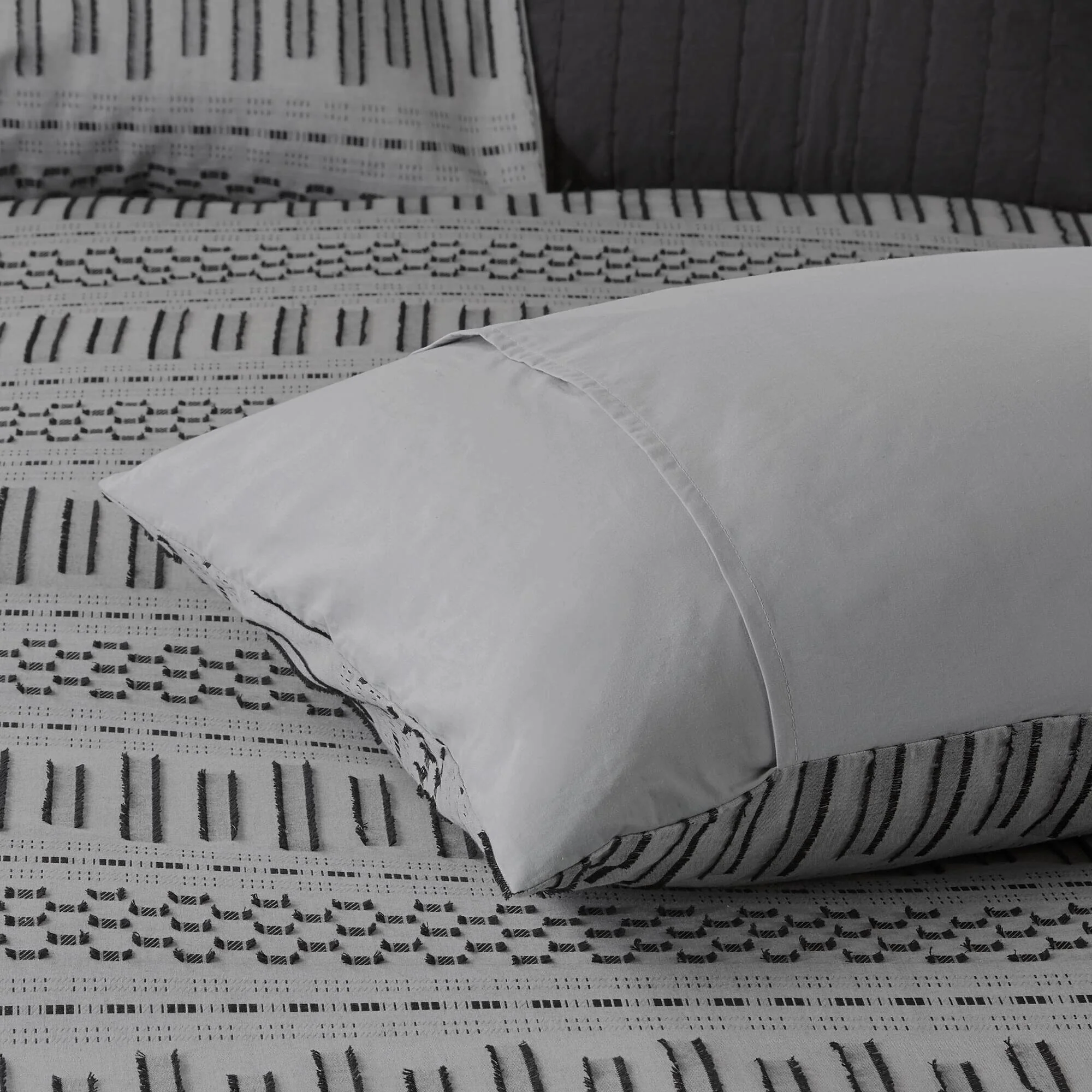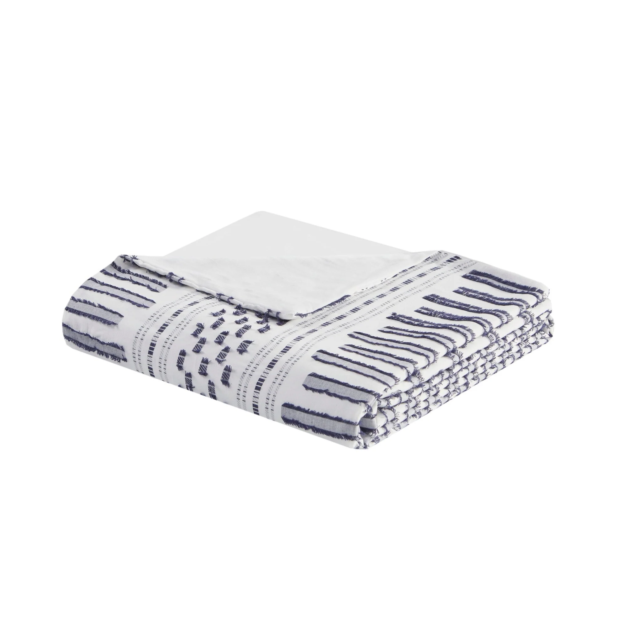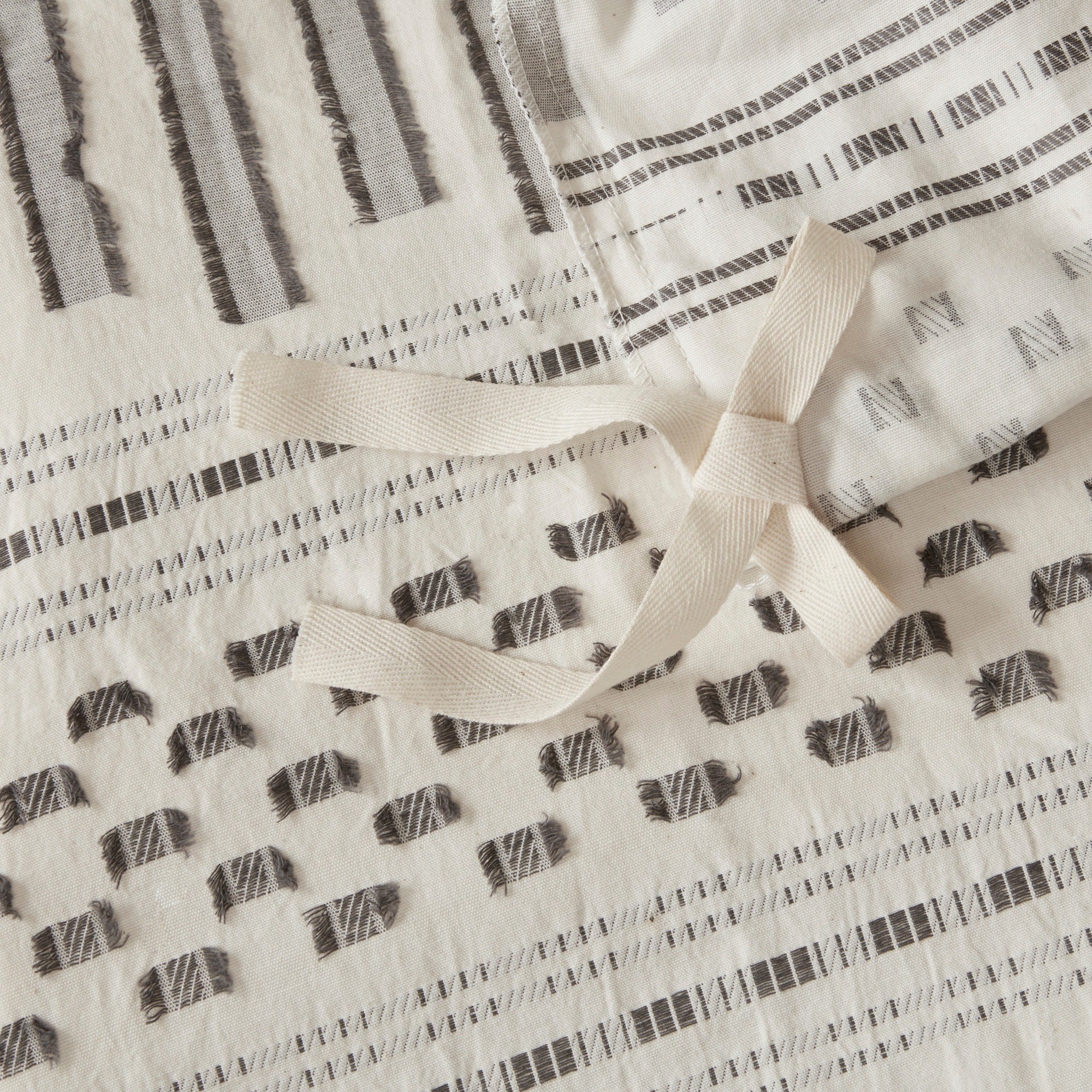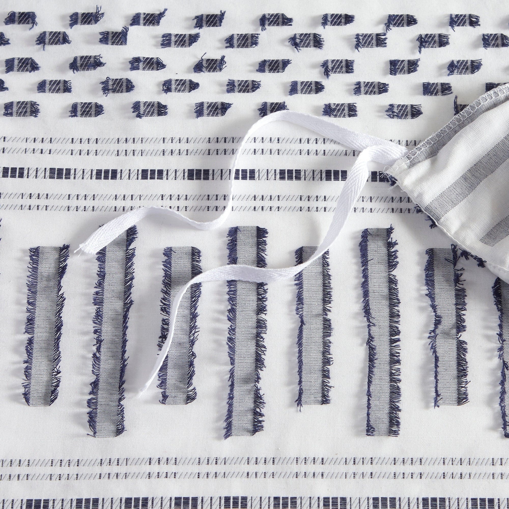 - Casual 100-percent cotton jacquard duvet set with eyelash look woven details in horizontal stripes