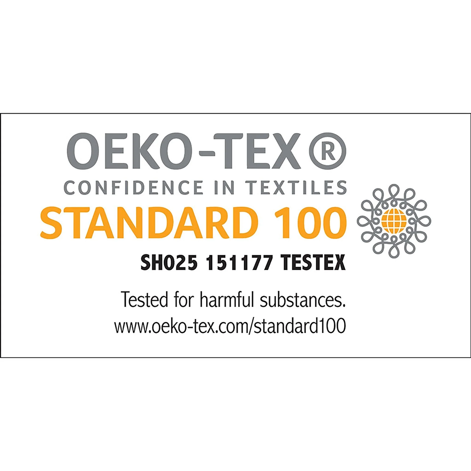 - Oeko-Tex Certified, includes no harmful substances or chemicals (#SH025 151177)