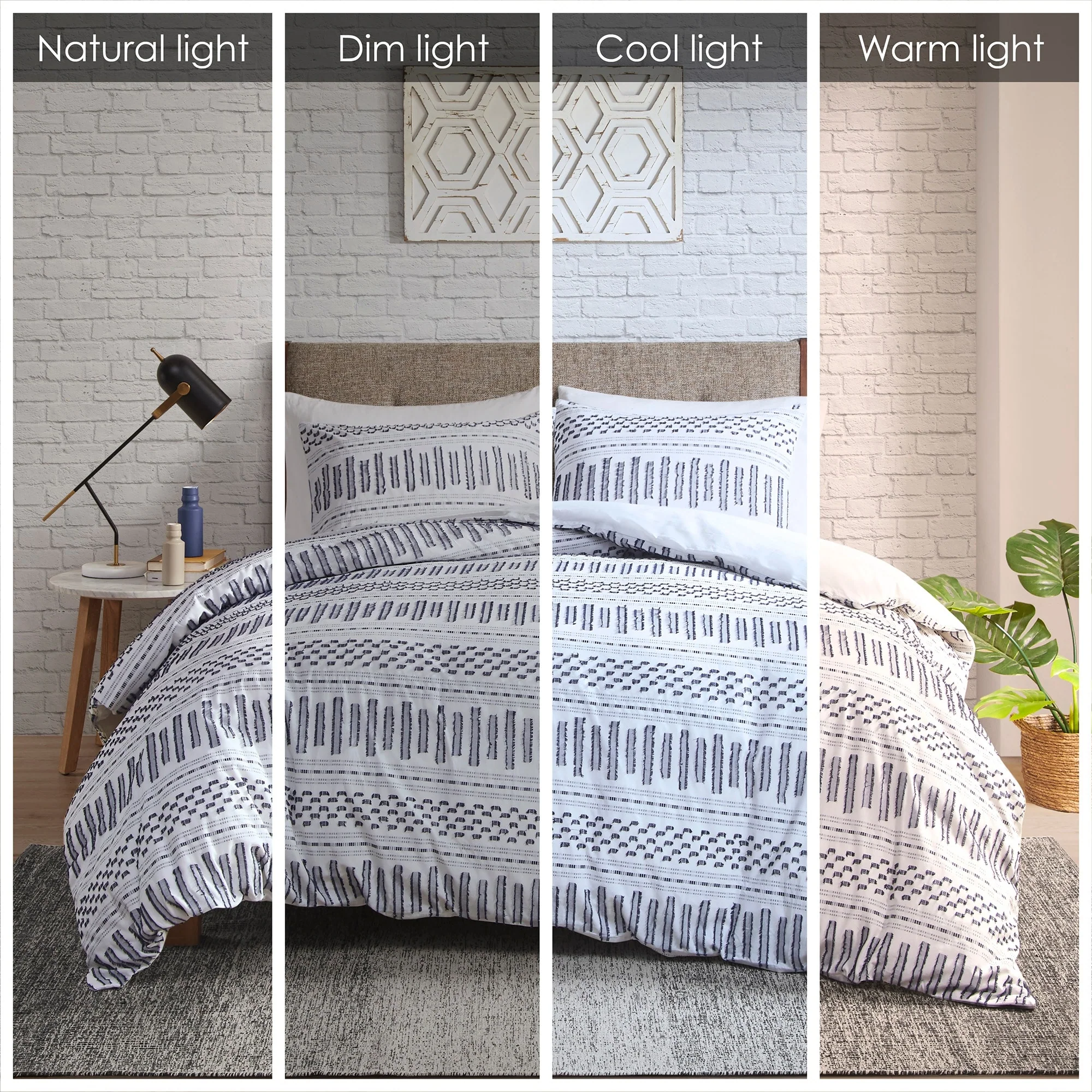 Give your bedroom a comfortable farmhouse look with INK IVY’s Rhea Cotton Jacquard Duvet Cover Mini Set. The cotton duvet cover features horizontal stripes, in color hues, with eyelash-looking woven details that add a charming accent to the top of the bed. Matching shams mimic the design seen on top of the bed completing the cotton jacquard bedding set. Made from 100% cotton, this jacquard duvet cover set is machine washable for easy care and provides a causal allure for your bedroom decor. A button closure allow you to place a comforter insert within the duvet cover and four inside ties on the corners help prevent it from shifting (Insert is NOT included). This bedding set is also OEKO-TEX certified, meaning it does not contain any harmful substances or chemicals, ensuring quality comfort and wellness. Items in the set may come in a rolled or compressed packaging, which will need to be fluffed up or steam ironed before use to remove wrinkles.