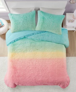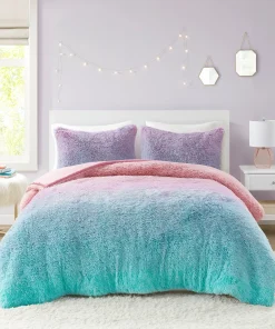 Add a cozy and stylish update to your bedroom with the Intelligent Design Talia Ombre Shaggy Faux Fur Comforter Set. The ultra soft comforter features an ombre shaggy faux fur that creates a fun and trendy look, while 2 coordinating shams (1 in Twin/TwinXL) complete the bedding set.Â