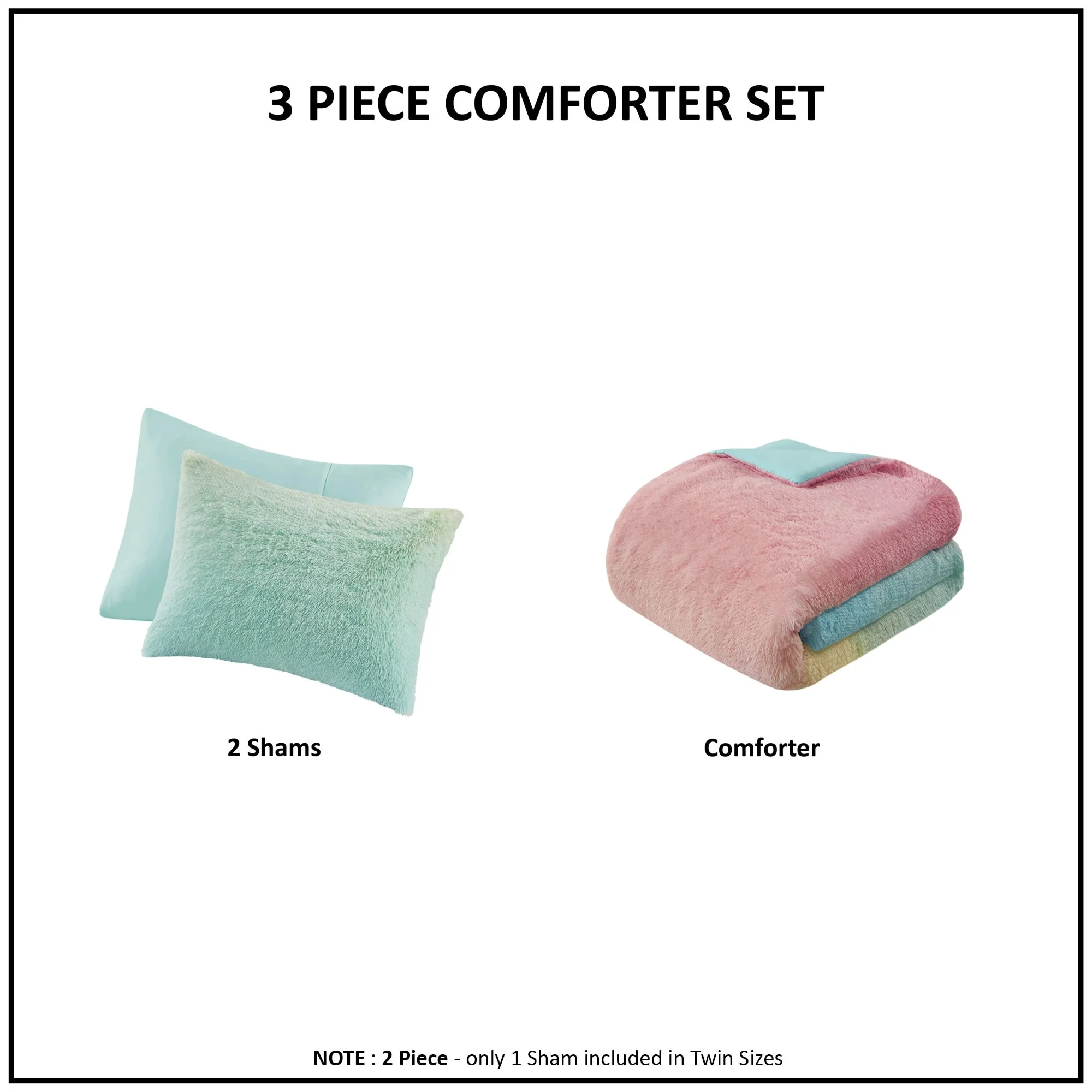 - Ultra cozy and soft ombre, shaggy faux fur comforter set