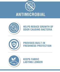 - Antimicrobial treatment helps reduce the growth of odor causing bacteria and keeps fabric lasting longer