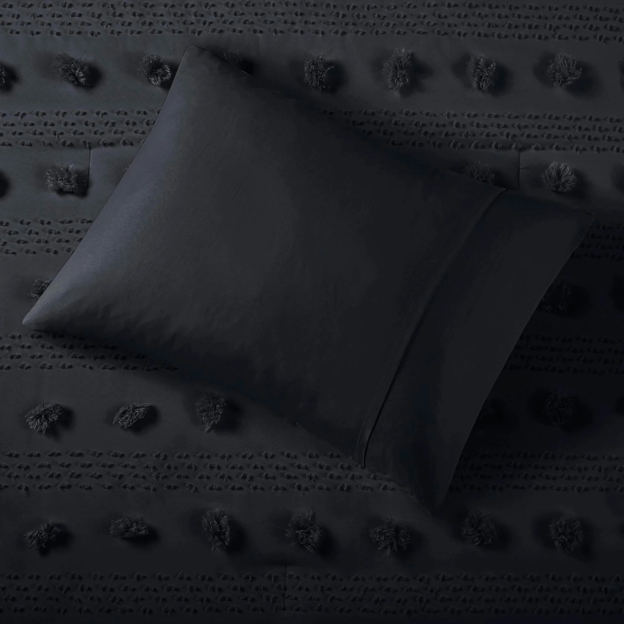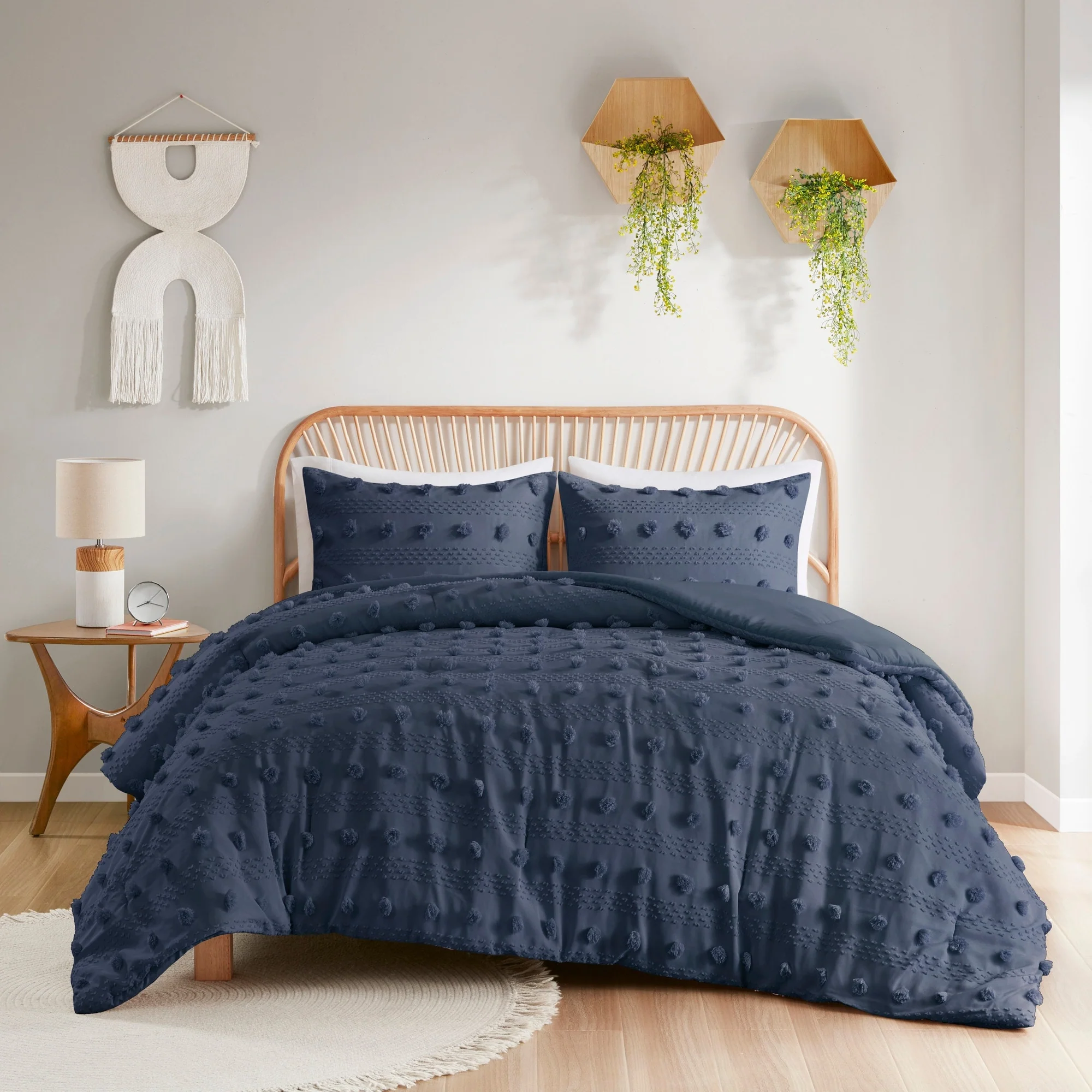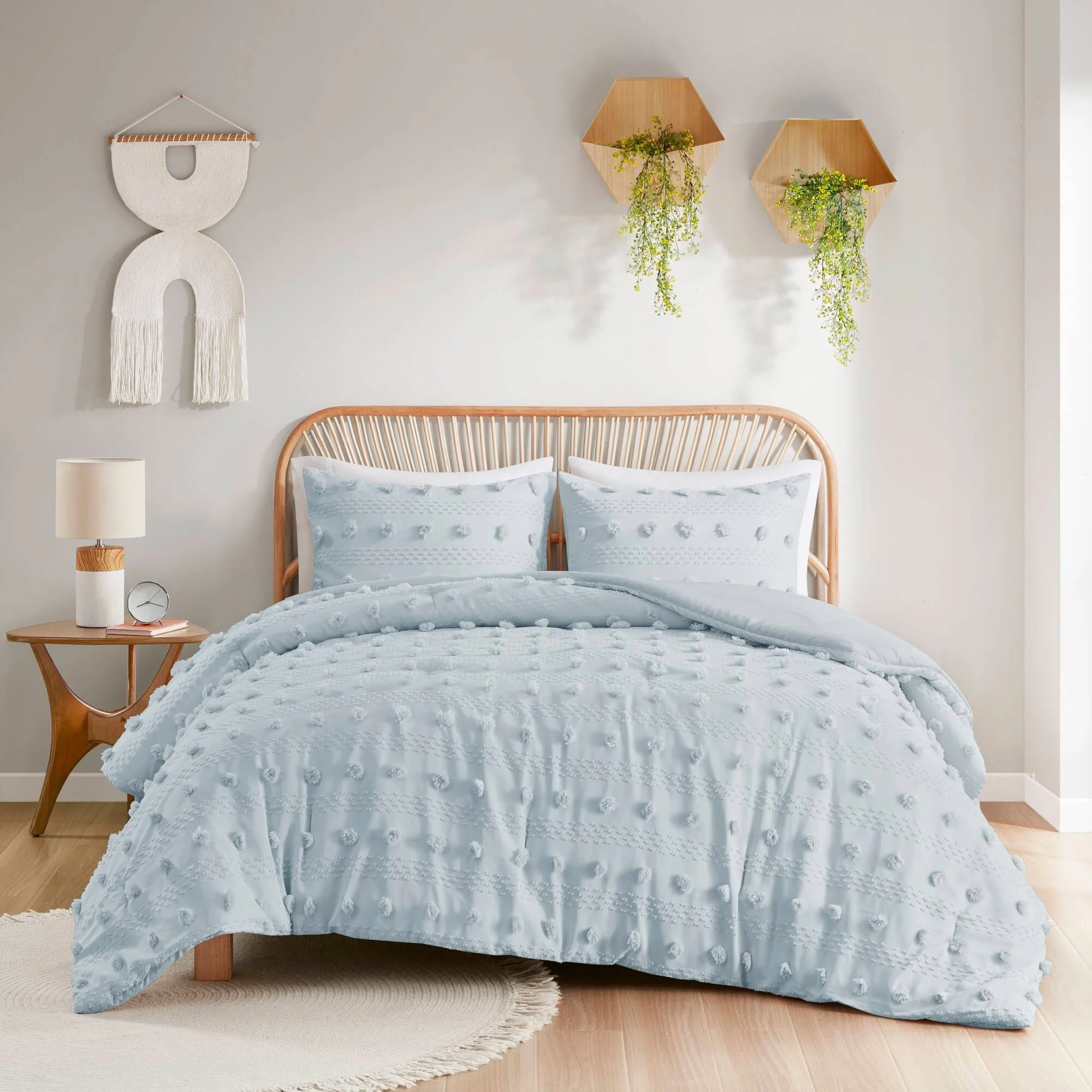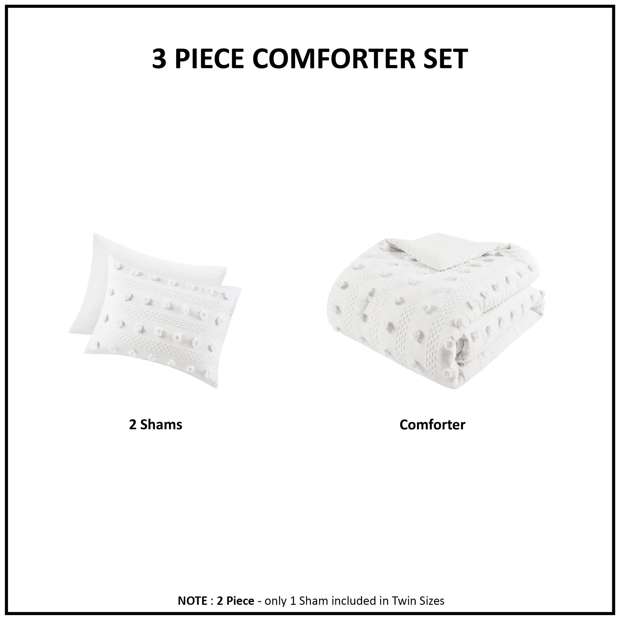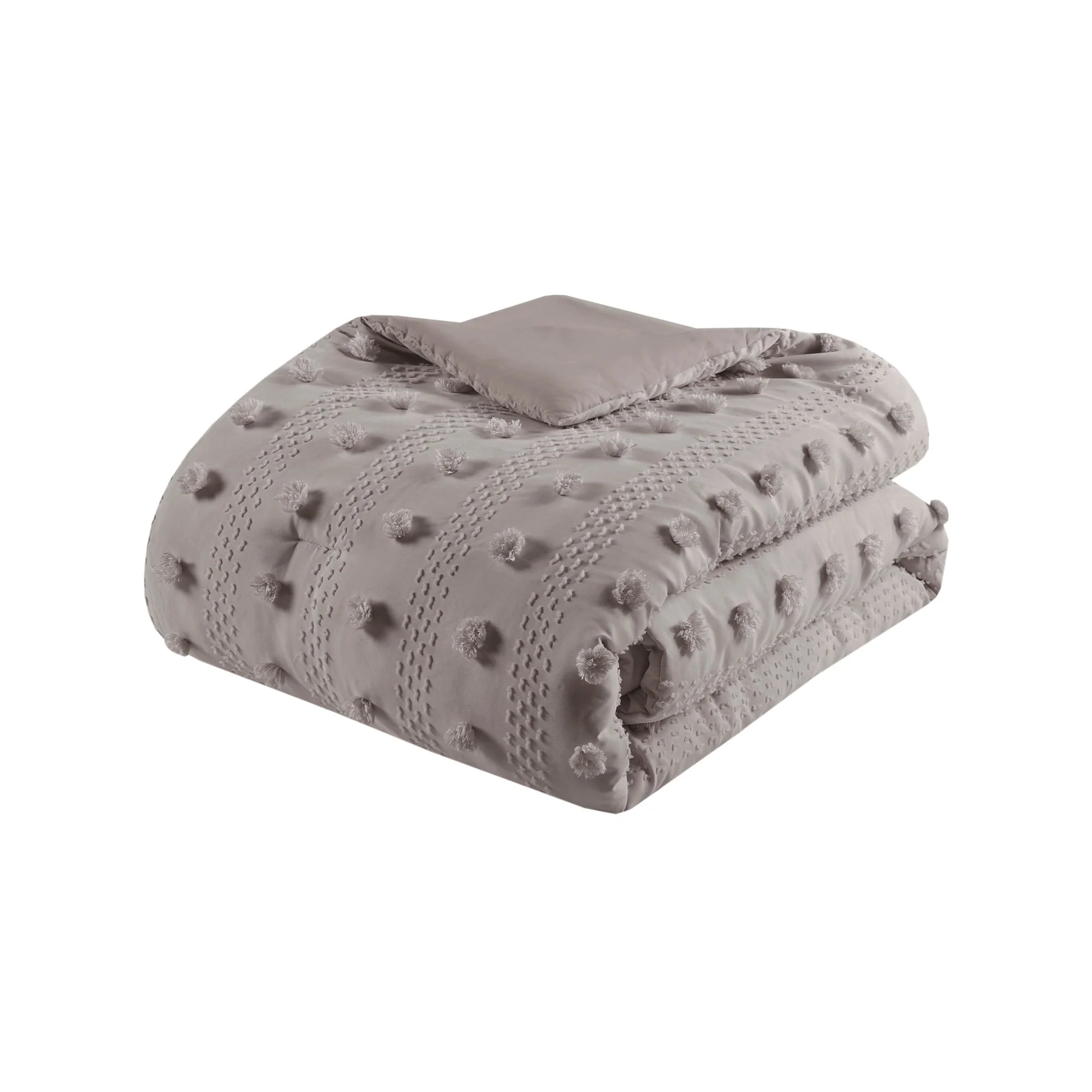 Refresh your bedroom with the elegant style of Intelligent Design’s Vera Clip Jacquard Comforter Set. This OEKO-TEX certified comforter features fun and playful clip jacquard pompoms that add dimension to the top of the bed for a lovely look.