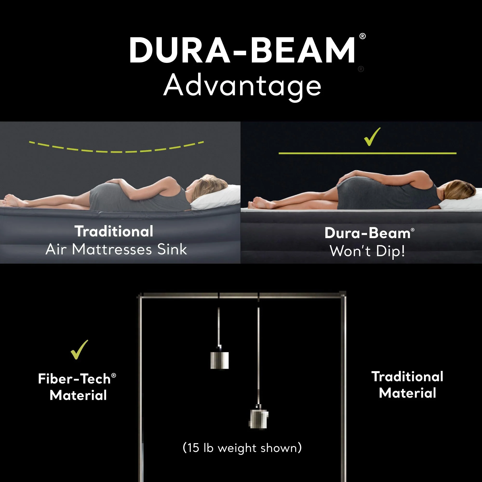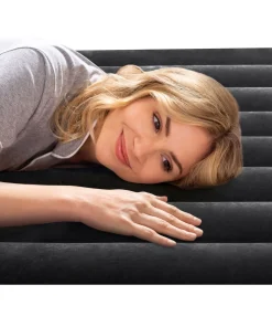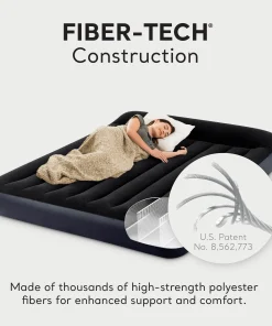 Dream as long as you need while laying comfortably on the Intex Dura-Beam Pillow Rest Classic Air Bed Inflatable Mattress. This queen-sized air bed is made to accommodate 2 people to rest peacefully. With a built-in electric air pump, inflating and deflating this mattress pad is a breeze. No need to bring extra pillows. This air mattress has an integrated roll pillow that provides optimal support to your neck, while the velvety top ensures maximum comfort for a good night’s sleep. Featuring a Fiber-Tech interior construction, this airbed provides a unique firmness and is raised 10 inches high for your convenience. When inflated, throw some queen-sized sheets, if necessary, and you’re ready to relax. Take this lightweight air mattress on the go while traveling out of town or on your next camping adventure trip. Perfect for you and your guests, the Dura-Beam Classic Airbed Mattress from Intex will satisfy all your relaxation needs.