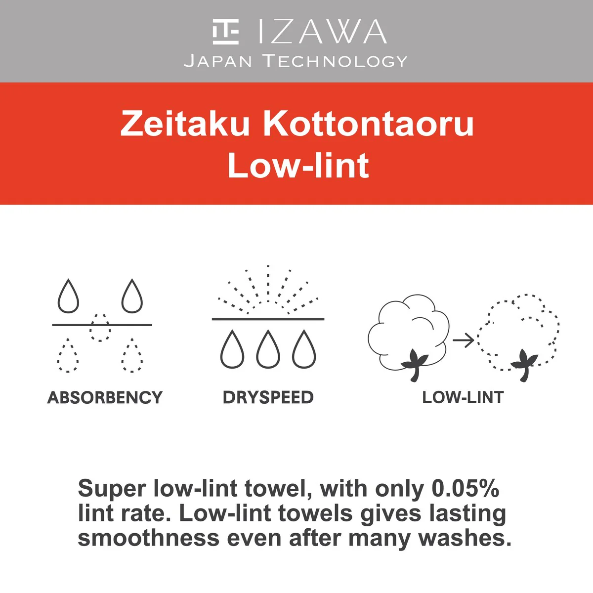 The Izawa Japan Technology Highly Absorbent Cotton Towel utilizes a unique moisture-transfer technology that attracts and retains water even after repeated use and wash after wash. This is particularly important for busy people on-the-go and works especially well after a workout in the gym or after a run. This is one of three new high-tech attribute-based towel sets created by the Tokyo-based Izawa. Japanese towels are considered among the finest in the world, comparing favorably to Egyptian or Turkish towels. This new line of towels is special because it utilizes superior Japanese construction, and the most up-to-date research and development and yarn technology. Soft and thirsty, they stand up to rigorous Western laundry and performance standards. Multiple colors ensure that you will find a set that complements your bathroom decor. Wash colors separately in warm water. Only non-chlorine bleach when needed. Tumble dry low.