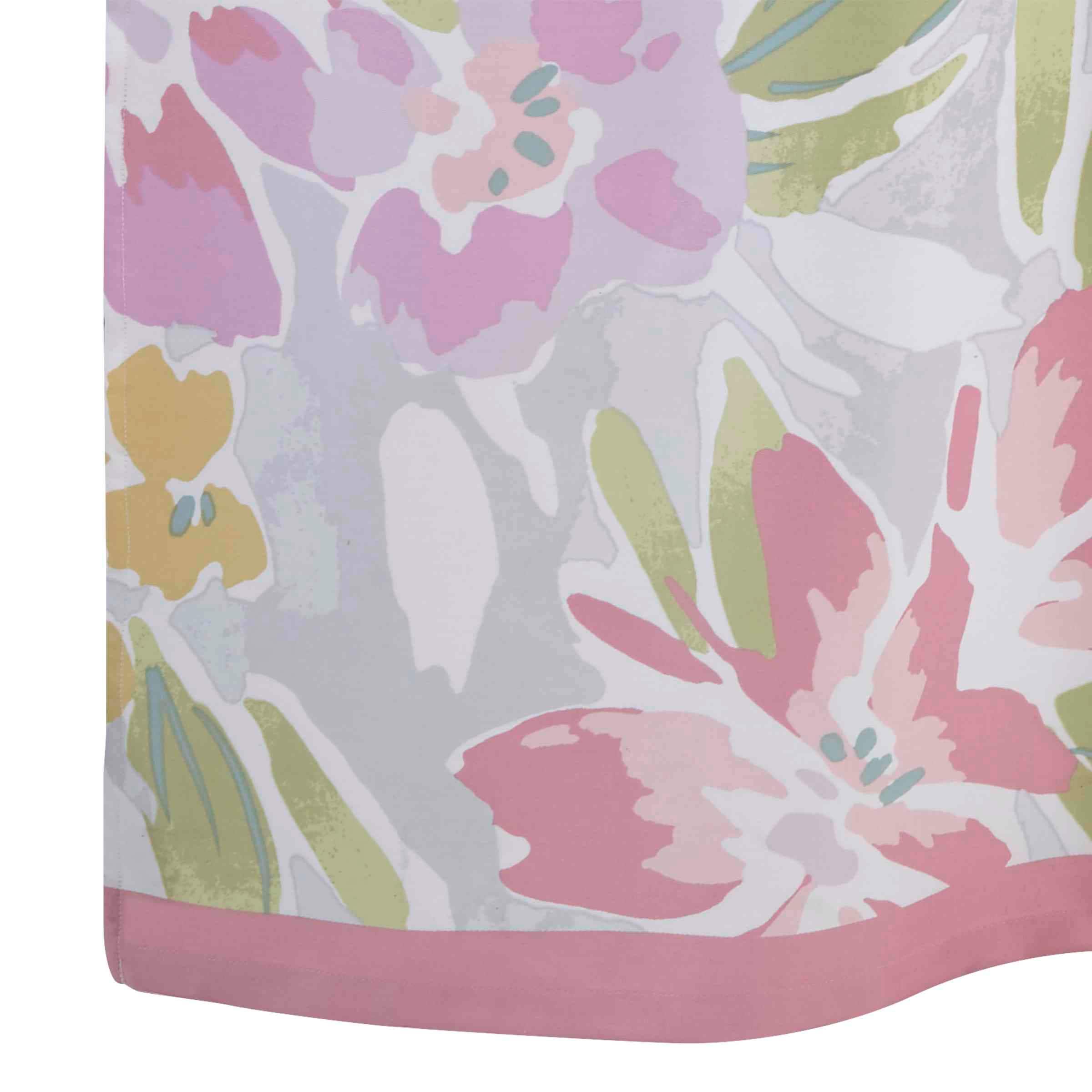 The Izod Catalina Shower Curtain features a beautifully printed allover painterly floral design in shades of purple, coral, pink, green and yellow and outlined in white. The cloth is a 52% polyester, 48% cotton heavyweight twill fabric for easy-care and a great look. 72" x 72".