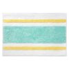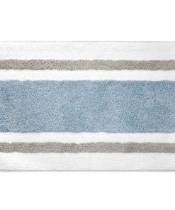 The Izod Clubhouse Stripe Blue Bathroom Rug features a large medium blue horizontal stripe in the middle with thinner grey and white stripes above and below. Made of 100% cotton for softness and outstanding absorbency. The rug measures a generous 20" x 32" with a non-skid latex on the back.